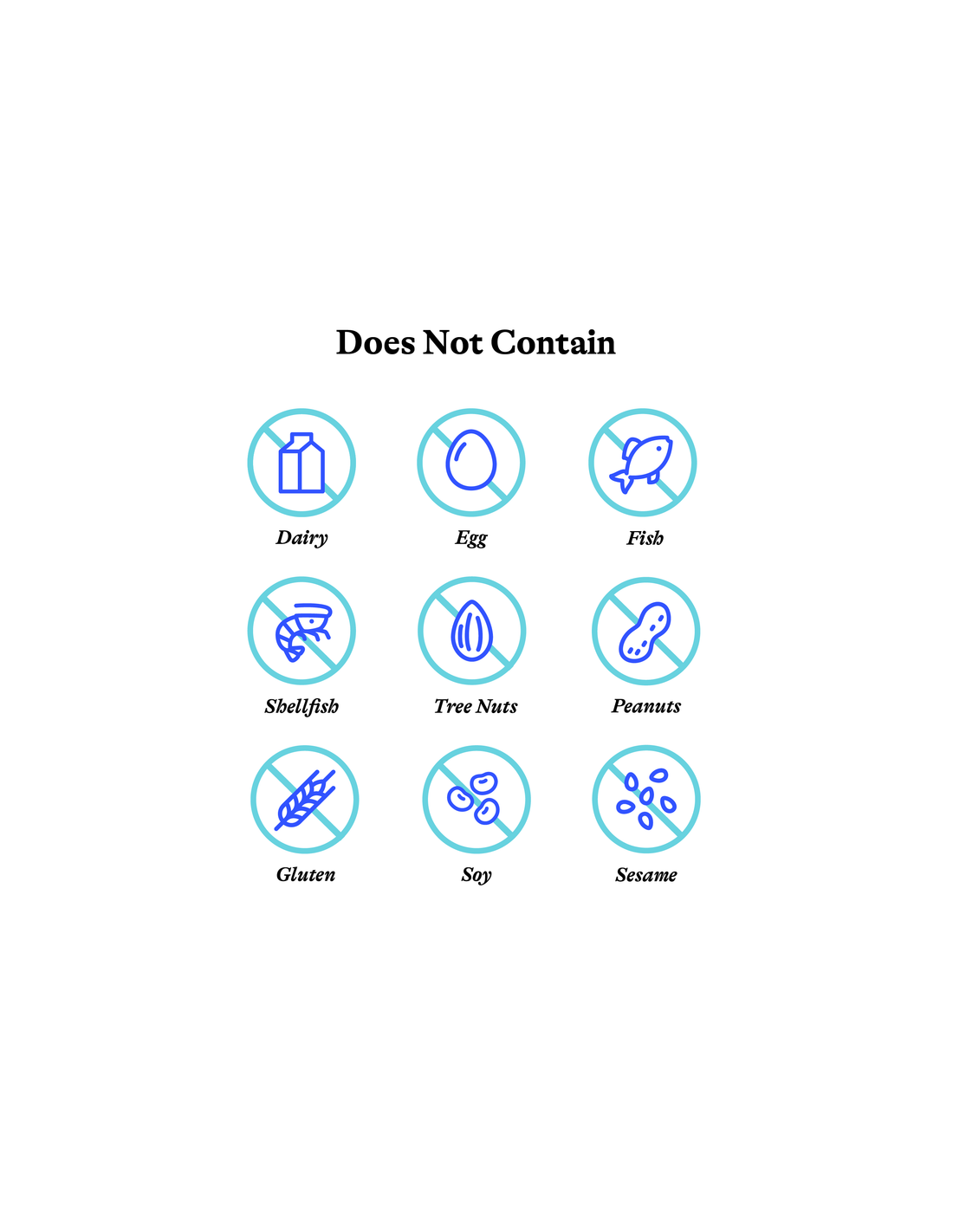 Libre de gluten, lácteos, soja, aditivos o conservantes artificiales.