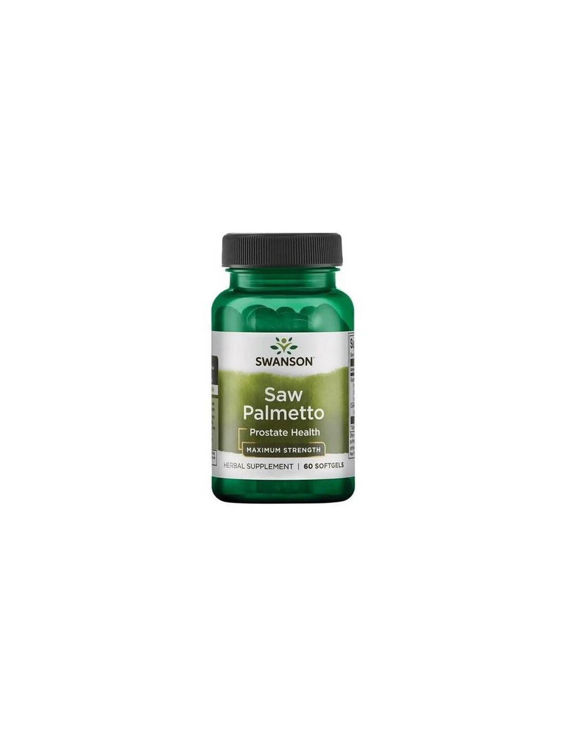 Swanson Superior Herbs Saw Palmetto es un suplemento alimenticio formulado con extracto de CO₂ supercrítico de bayas de saw palmetto, estandarizado para aportar un alto contenido en ácidos grasos. La fórmula se complementa con aceite de semilla de calabaza y se presenta en cápsulas blandas fáciles de tragar.