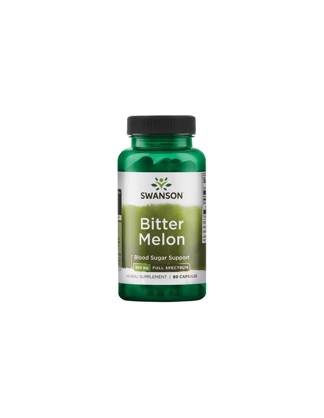 Swanson Premium Full Spectrum Bitter Melon ofrece 500 mg de melón amargo (Momordica charantia) en cada cápsula vegana. La fórmula contiene solo excipientes esenciales y está diseñada para usarse dos veces al día con agua.