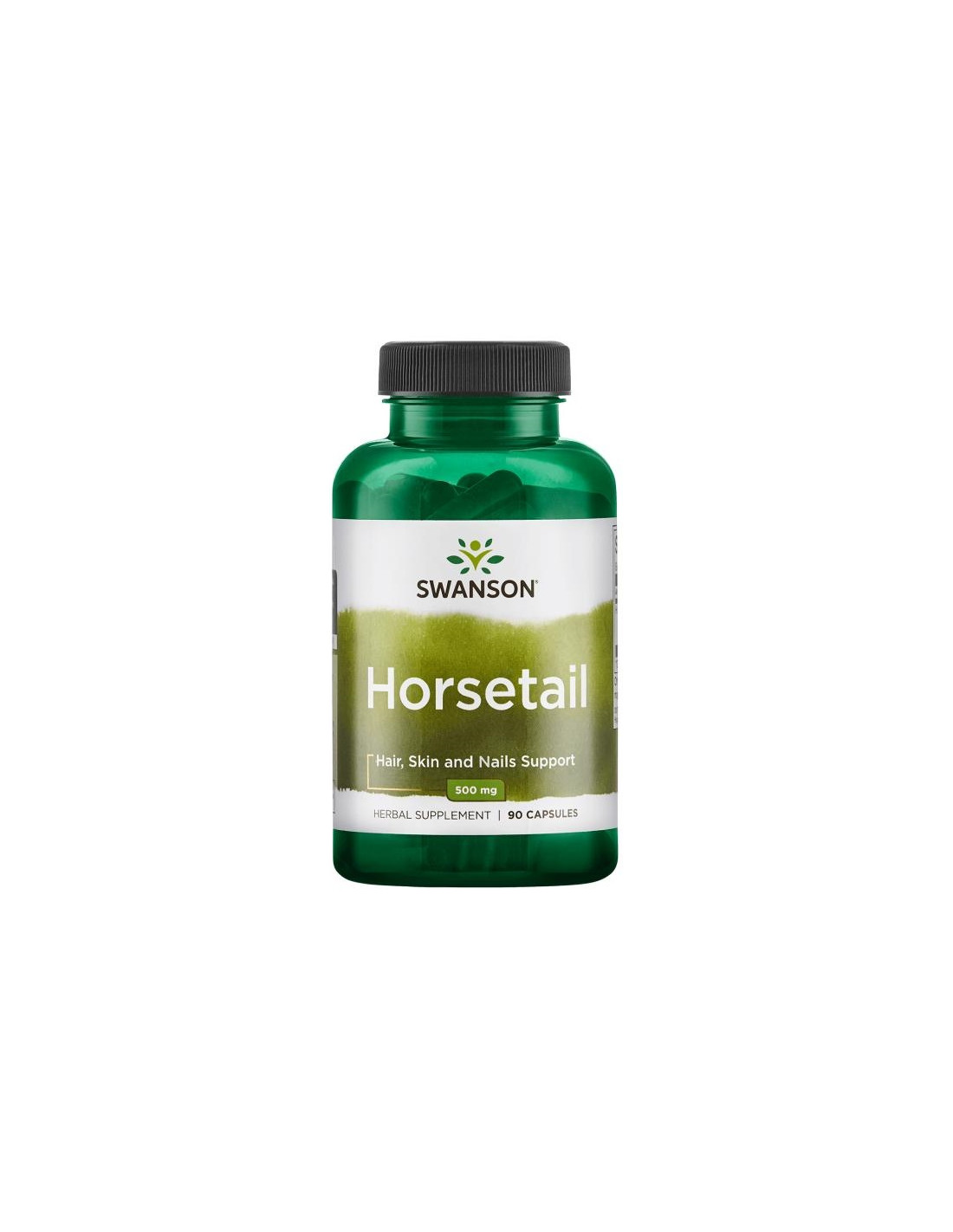 Swanson Premium Horsetail es un complemento alimenticio formulado con la hierba de cola de caballo (Equisetum arvense) procedente de las partes aéreas de la planta. Cada cápsula aporta una cantidad definida de material botánico, ideal para una dieta variada y equilibrada.