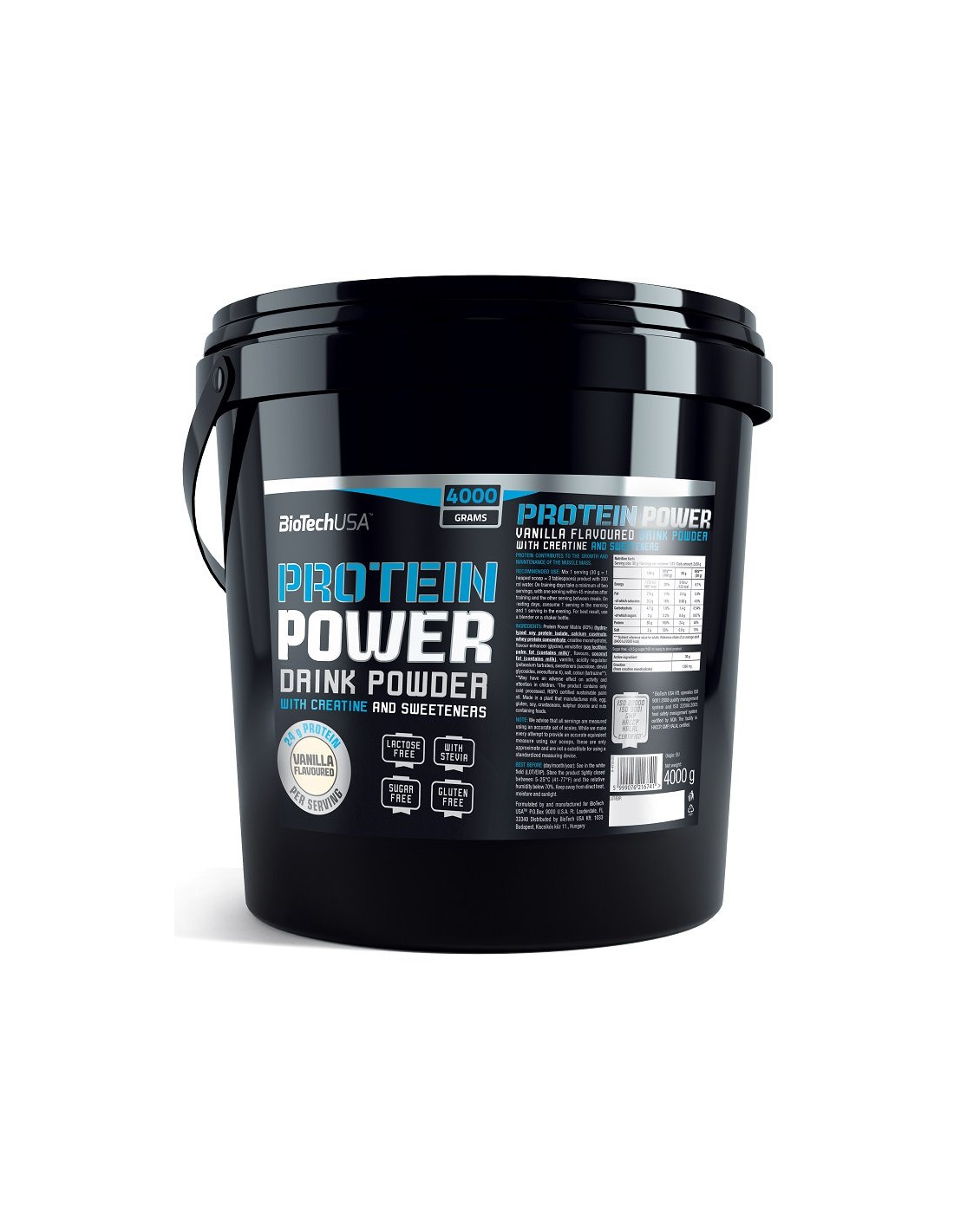 Protein Power – 4000 g de BioTechUSA est une poudre protéinée à mélanger avec de l'eau ou d'autres liquides. Chaque portion de 30 g apporte 26 g de protéines et est pauvre en matières grasses, glucides et sucres.