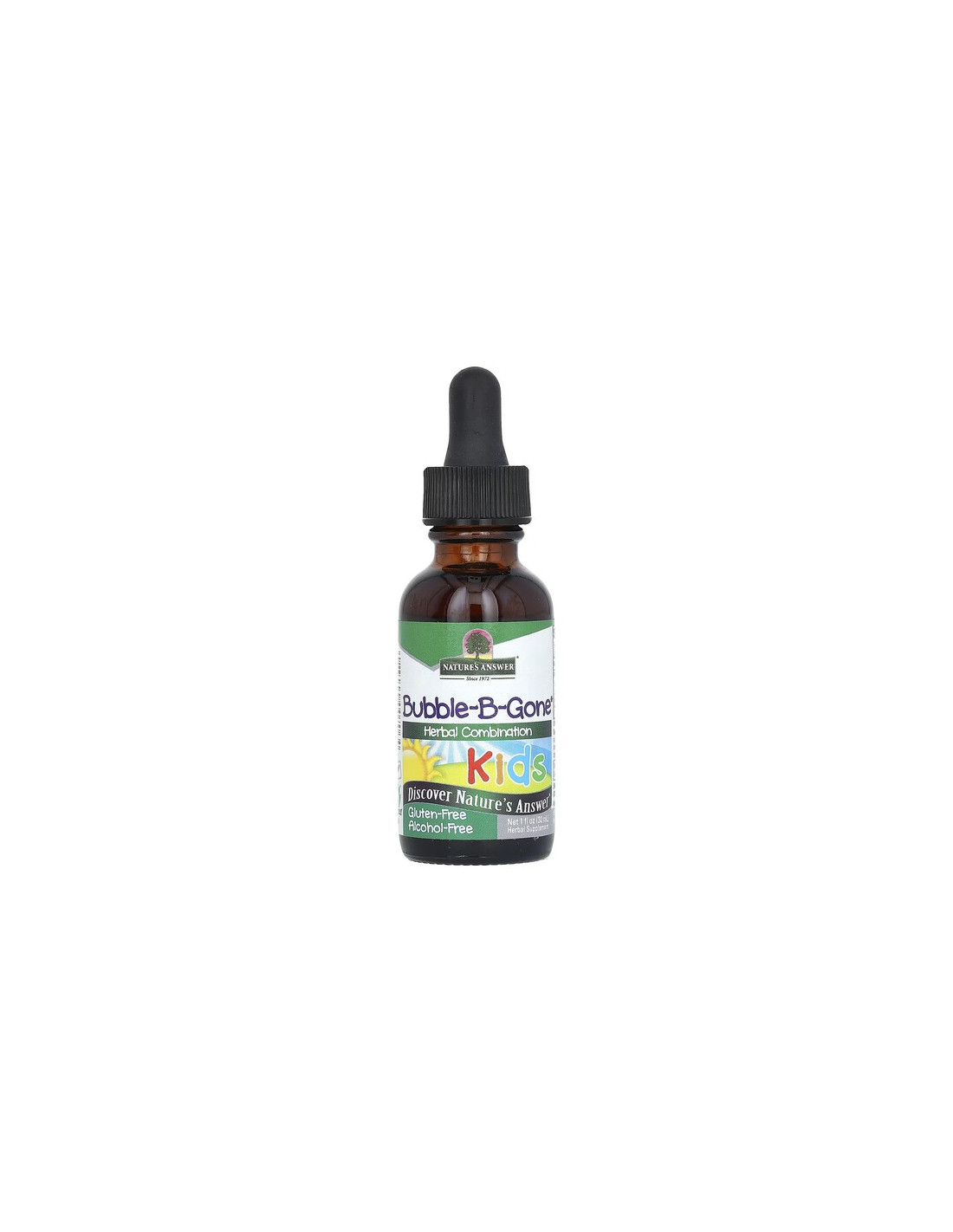Nature's Answer Bubble-B-Gone 1 oz sans alcool est un complément alimentaire soigneusement conçu combinant des extraits de camomille ( Matricaria recutita ), d'herbe à chat ( Nepeta cataria ), de fenouil ( Foeniculum vulgare ) et de mélisse ( Melissa officinalis ), mélangés dans une base de glycérine végétale apaisante, en totale conformité avec l'étiquette officielle.