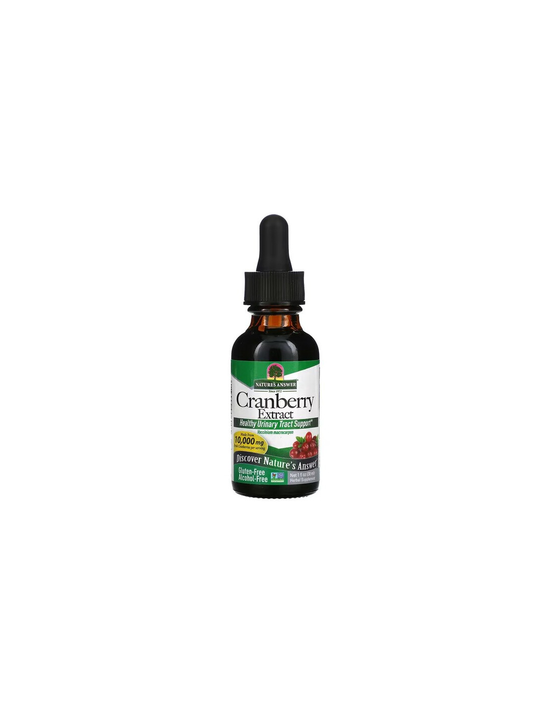 L'extrait de canneberge Nature's Answer est un complément alimentaire contenant un extrait liquide de canneberge (Vaccinium macrocarpon) dans une base de glycérine. Chaque portion de 2 ml apporte l'équivalent de 2 000 mg d'extrait sec, sans alcool et adapté à une utilisation quotidienne.