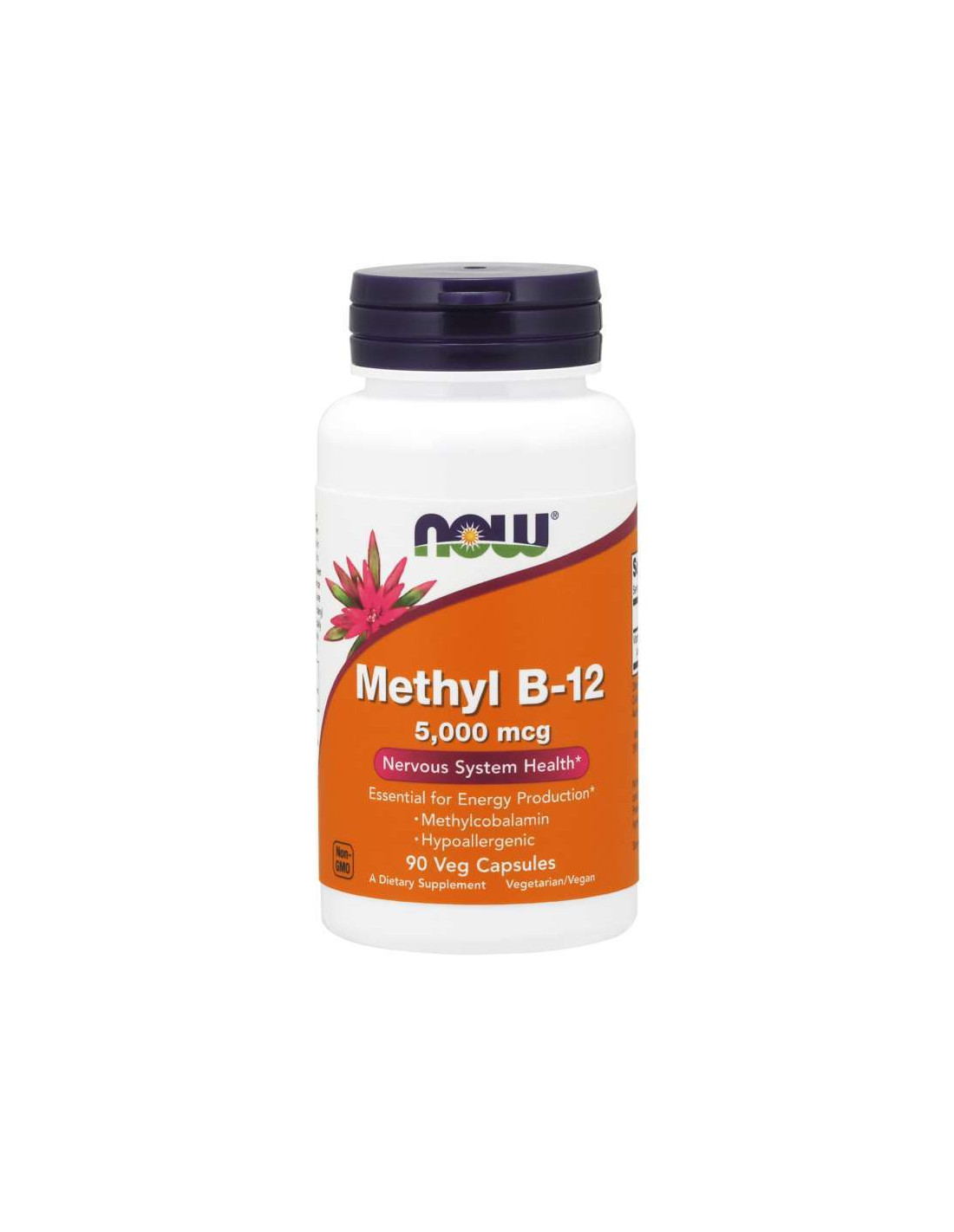 Capsules végétariennes apportant 5 mg (5 000 mcg) de vitamine B-12 sous forme de méthylcobalamine par portion. Produites dans une usine certifiée BPF ; fabrication et contrôle qualité aux États-Unis.