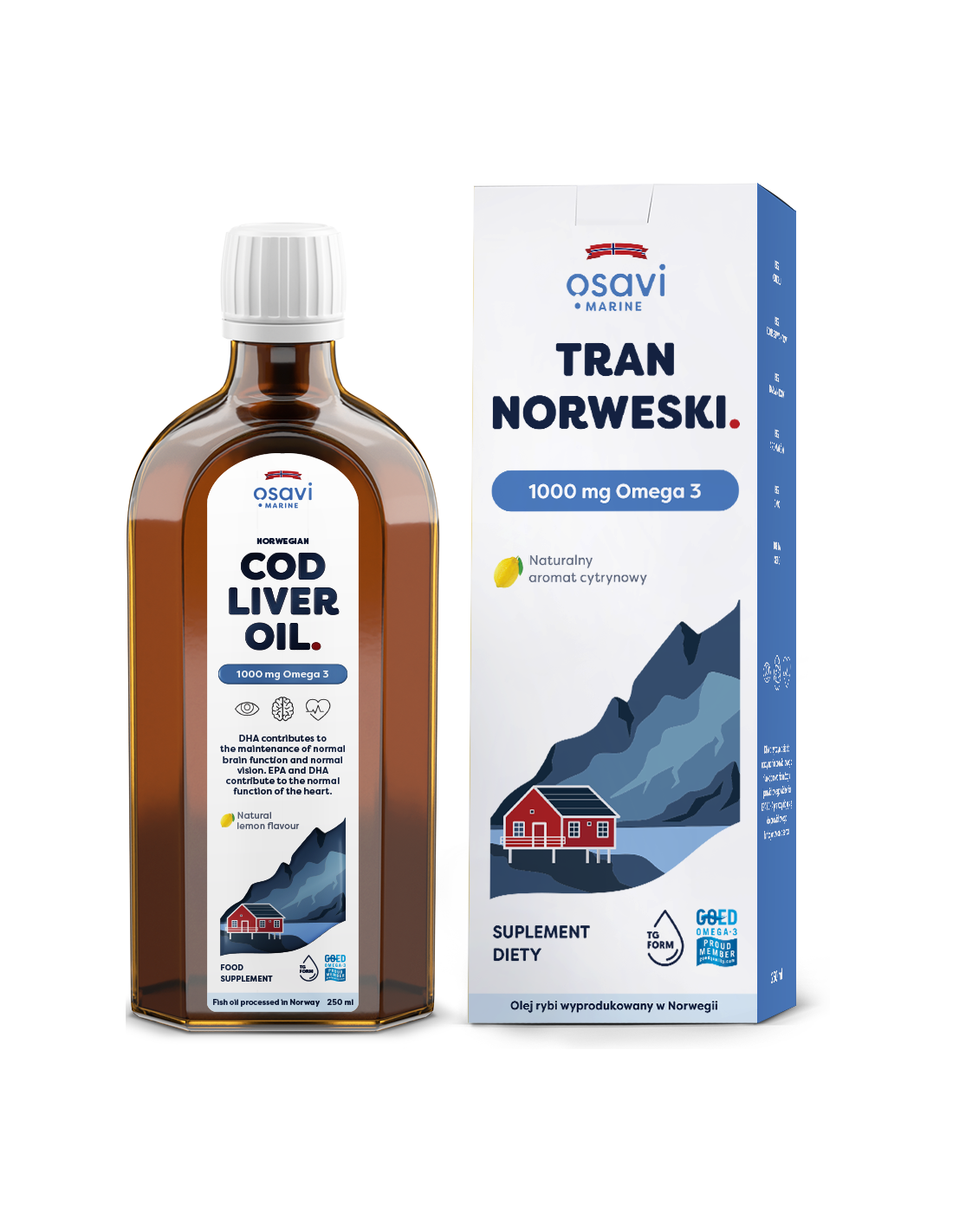Tran Norweski, 1000mg Omega 3 (Cytryna) - 250 ml. | Osavi