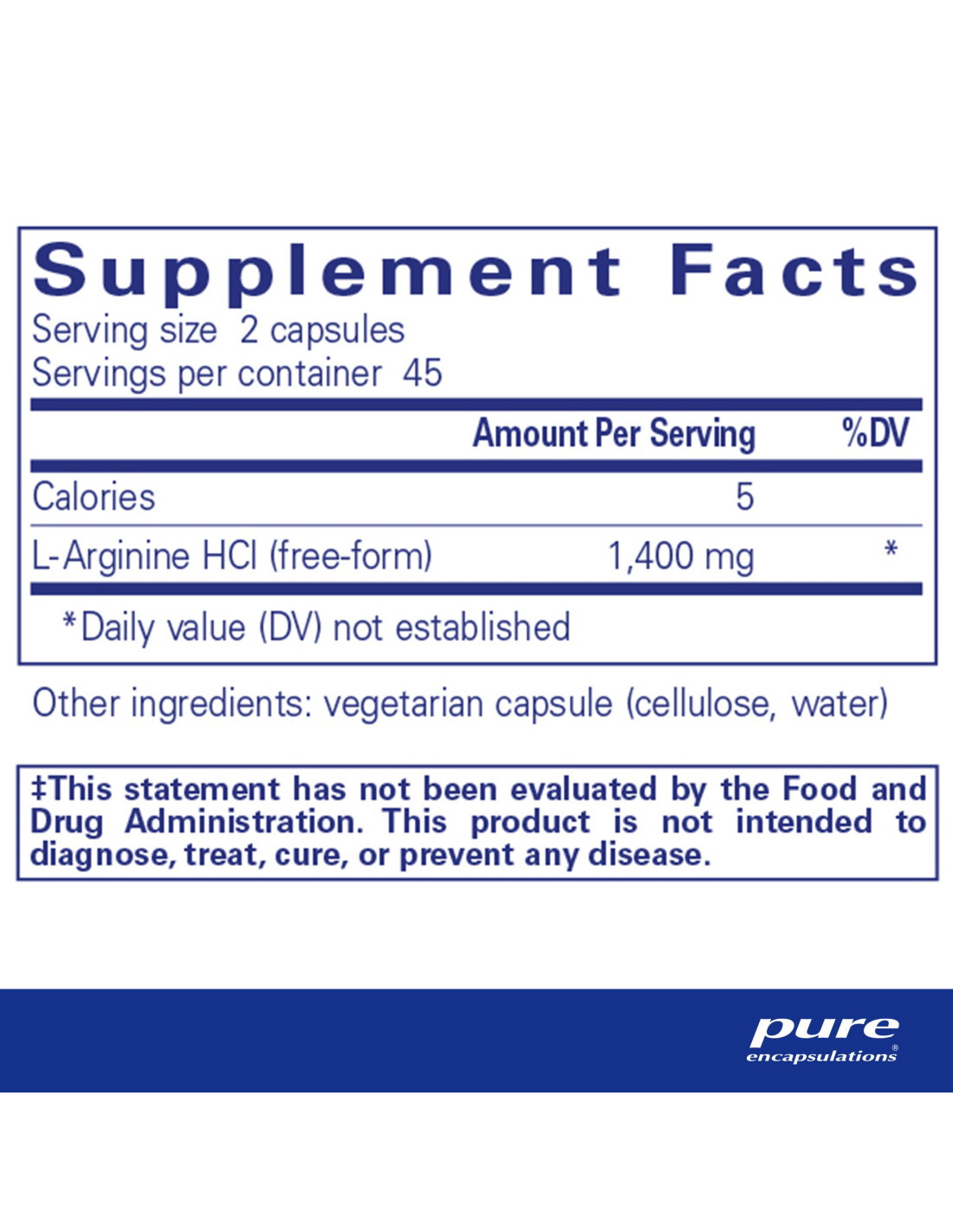 L-Arginine de Pure Encapsulations fournit l'acide aminé, l'arginine, sous une forme hautement biodisponible.