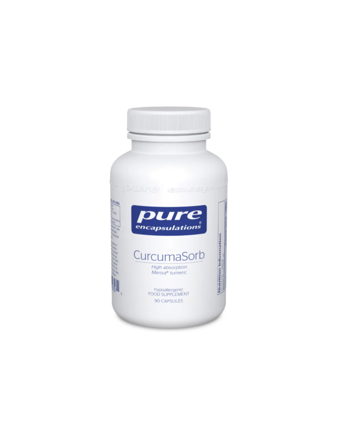 CurcumaSorb contient du phytosome de curcuma Meriva®, une combinaison d'extrait de racine de curcuma longa et d'un complexe de phospholipides de tournesol sous une forme biodisponible. Les formules Pure Encapsulations sont élaborées à partir d'ingrédients hypoallergéniques de haute qualité.