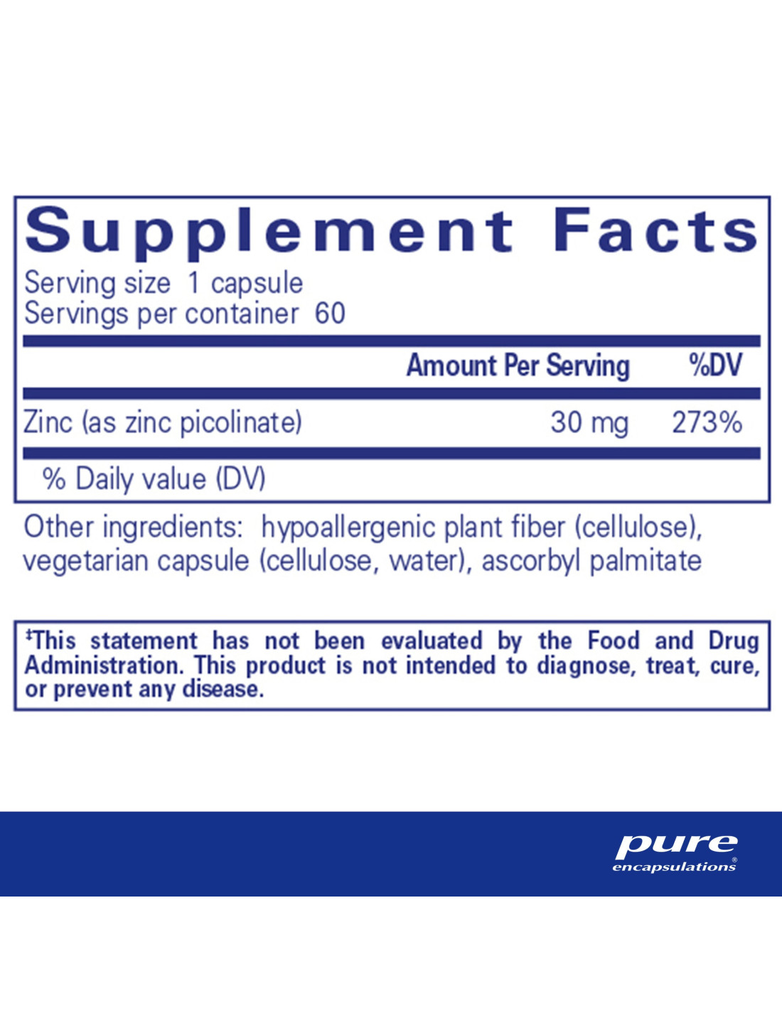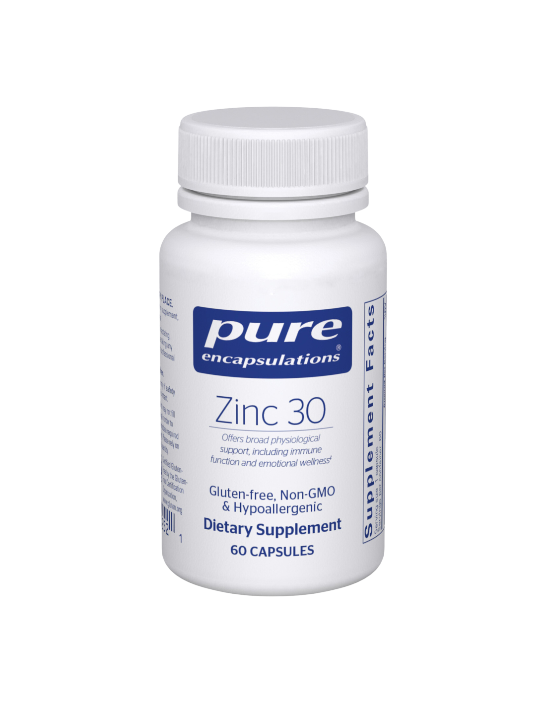 Zinc 30 de Pure Encapsulations fournit 30 mg de picolinate de zinc, une forme de zinc hautement absorbable. Le zinc présente de nombreux avantages pour la santé. Il contribue au fonctionnement normal du système immunitaire et des fonctions cognitives. Mais ce n'est pas tout !
