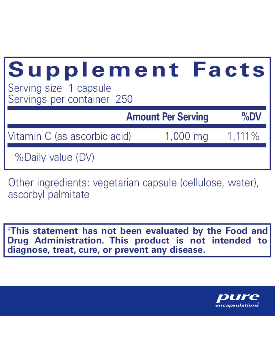 Acide ascorbique - 250 gélules | Pure Encapsulations