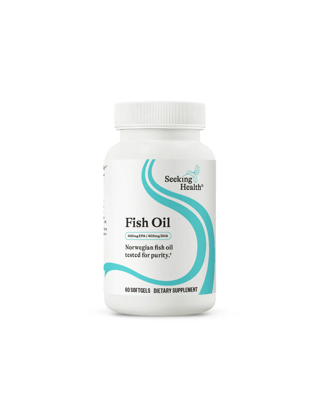 L'huile de poisson optimale Seeking Health (120 capsules molles) est un complément alimentaire fournissant une huile de poisson de haute qualité, concentrée en acides gras oméga-3 (EPA et DHA) sous forme de triglycérides naturels. Chaque capsule molle apporte une dose importante d'acides gras essentiels issus de poissons d'eau froide, et se présente sous une forme facile à avaler.