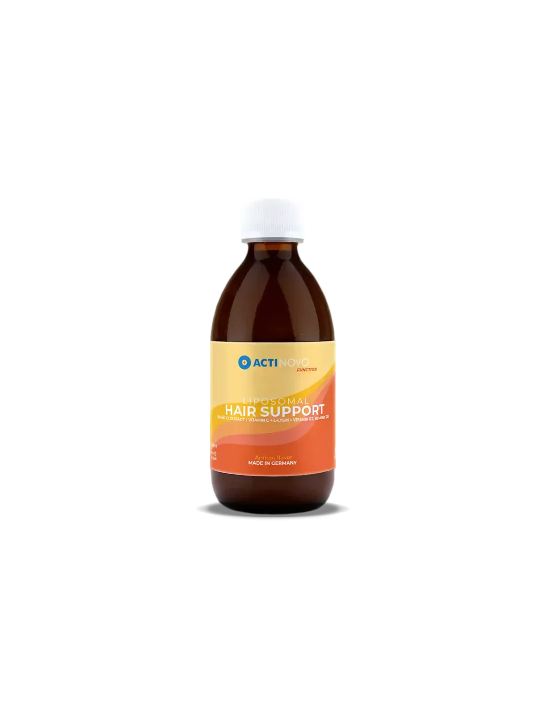 Az ActiNovo liposzómás hajápolója esszenciális tápanyagokat ötvöz, beleértve a lizint, a bambusz szilícium-dioxidot, a biotint, a cinket, a folátot, a metilkobalamint és a C-vitamint egy természetes, sárgabarack ízű liposzómás folyadékban. Liposzómákban, akár 64-szer nagyobb biohasznosulás érdekében, táplálja a hajhagymákat, támogatja a kollagénszintézist, és elősegíti a haj erősségét, volumenét és fényét – ideális a mindennapi hajápolási rutinokhoz.*