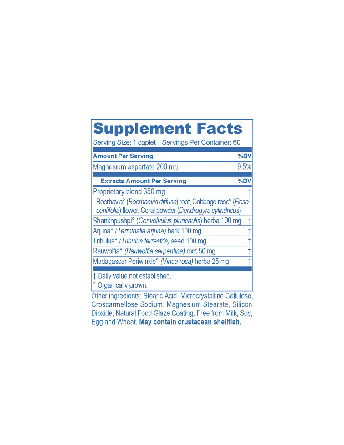 | Szabadalmaztatott keverék† (Rosa centifolia, Boerhaavia diffusa, Dendrogyra cylindricus) | 350 mg | — |
