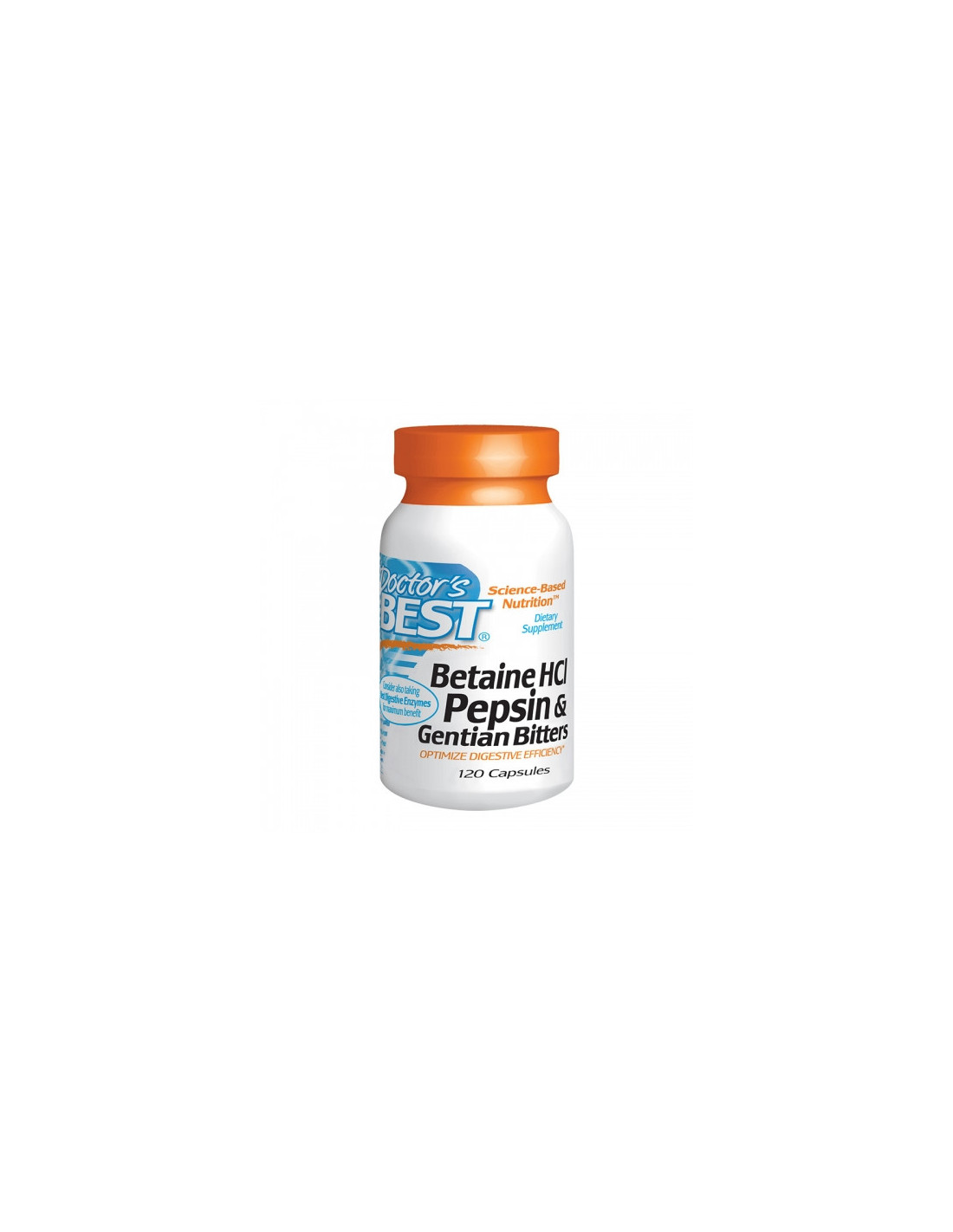 A Doctor's Best Betaine HCl Pepsin & Gentian Bitters sósavat, pepszin emésztőenzimet és a hagyományos gyógynövényt, a tárnicsgyökeret ötvözi. Kapszulákban kapható, étkezés közben történő alkalmazásra.
