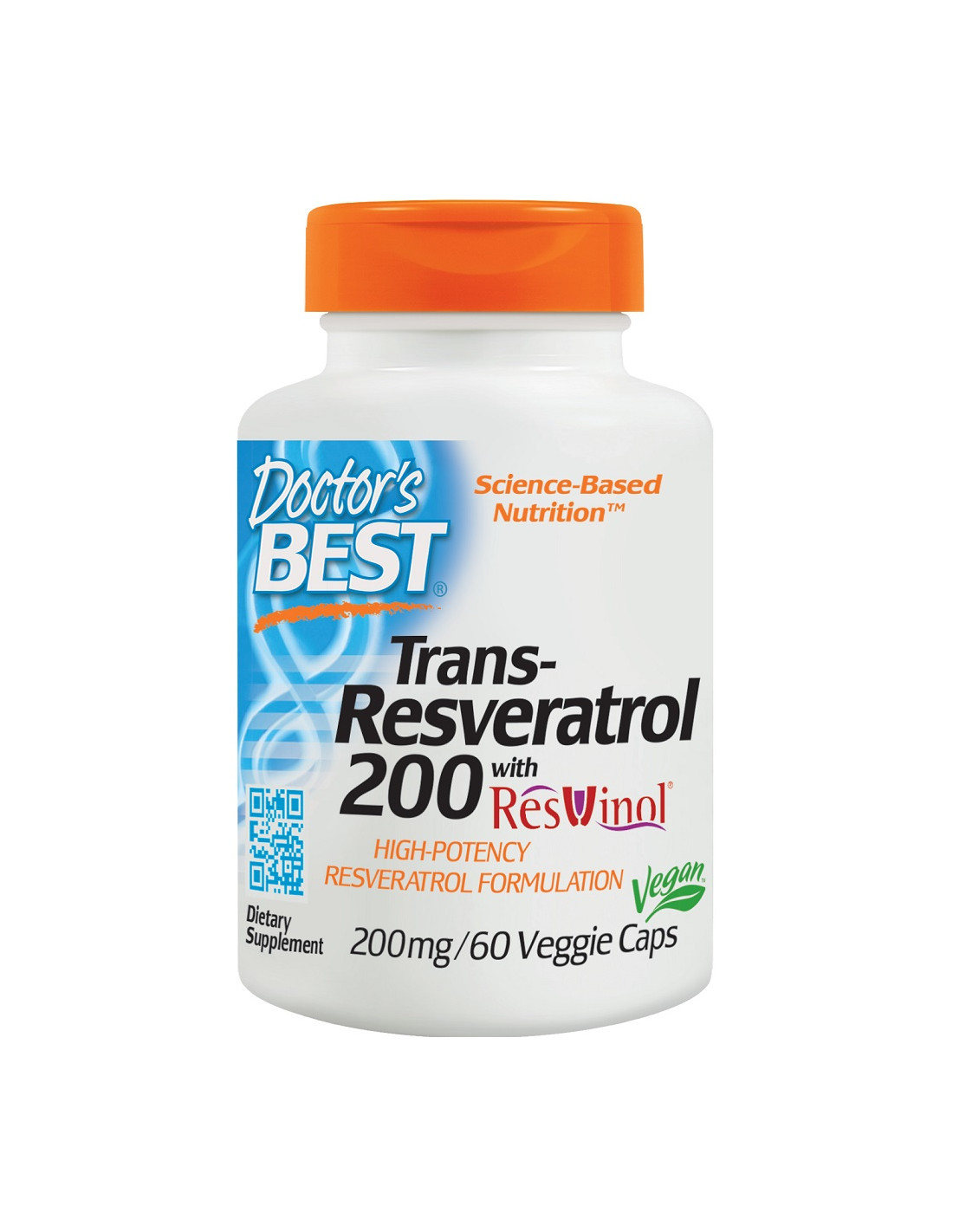 A Doctor's Best Trans-Resveratrol 200 mg kapszula ResVinol®-t tartalmaz, amely vörösbor mátrix, szőlő és japánkeserűfű (Polygonum cuspidatum) kivonatainak szabadalmaztatott keveréke. Minden kapszula 200 mg transz-resveratrolt és 80 mg természetesen előforduló polifenolt tartalmaz. A termék vegetáriánus étrendbe is alkalmas, és nagy tisztaságú növényi alapú összetevőkből készül.