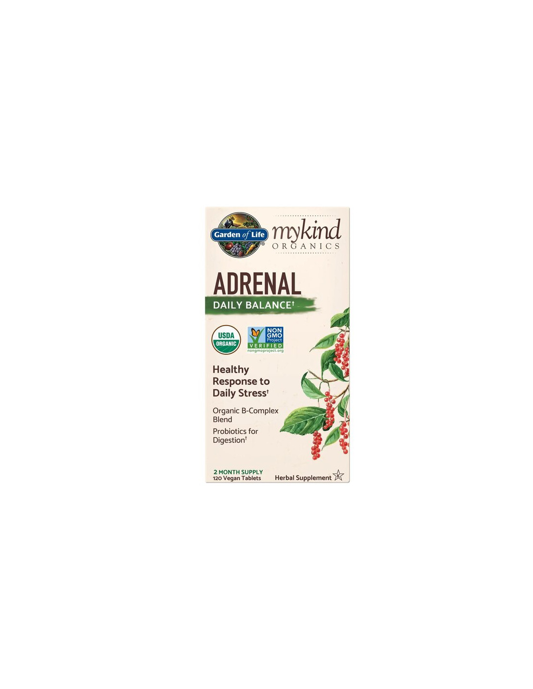 A Garden of Life Organics Adrenal Daily Balance egy étrend-kiegészítő, amely B-vitaminok, bio növényi kivonatok és probiotikus kultúrák keverékét tartalmazza. A termék napi felnőtt használatra készült, és tabletta formájában kapható.
