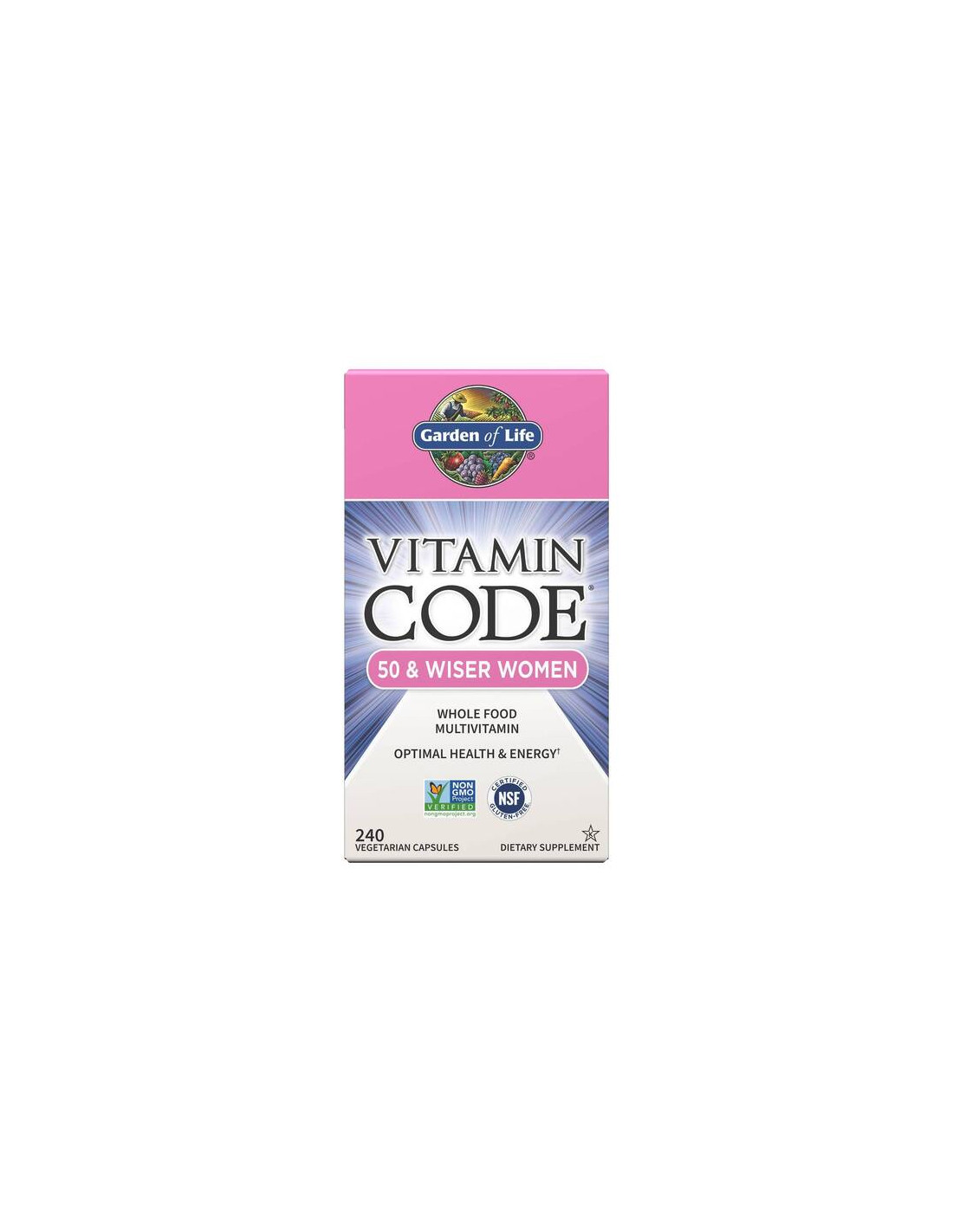 A Garden of Life Vitamin Code 50 & Wiser Women egy étrend-kiegészítő, amely vitaminok és ásványi anyagok átfogó keverékét tartalmazza, kiegészítve bio gyümölcs- és zöldségösszetevőkkel, enzimekkel és probiotikus kultúrákkal. A kapszula formátumát a kényelmes napi bevitel érdekében tervezték.