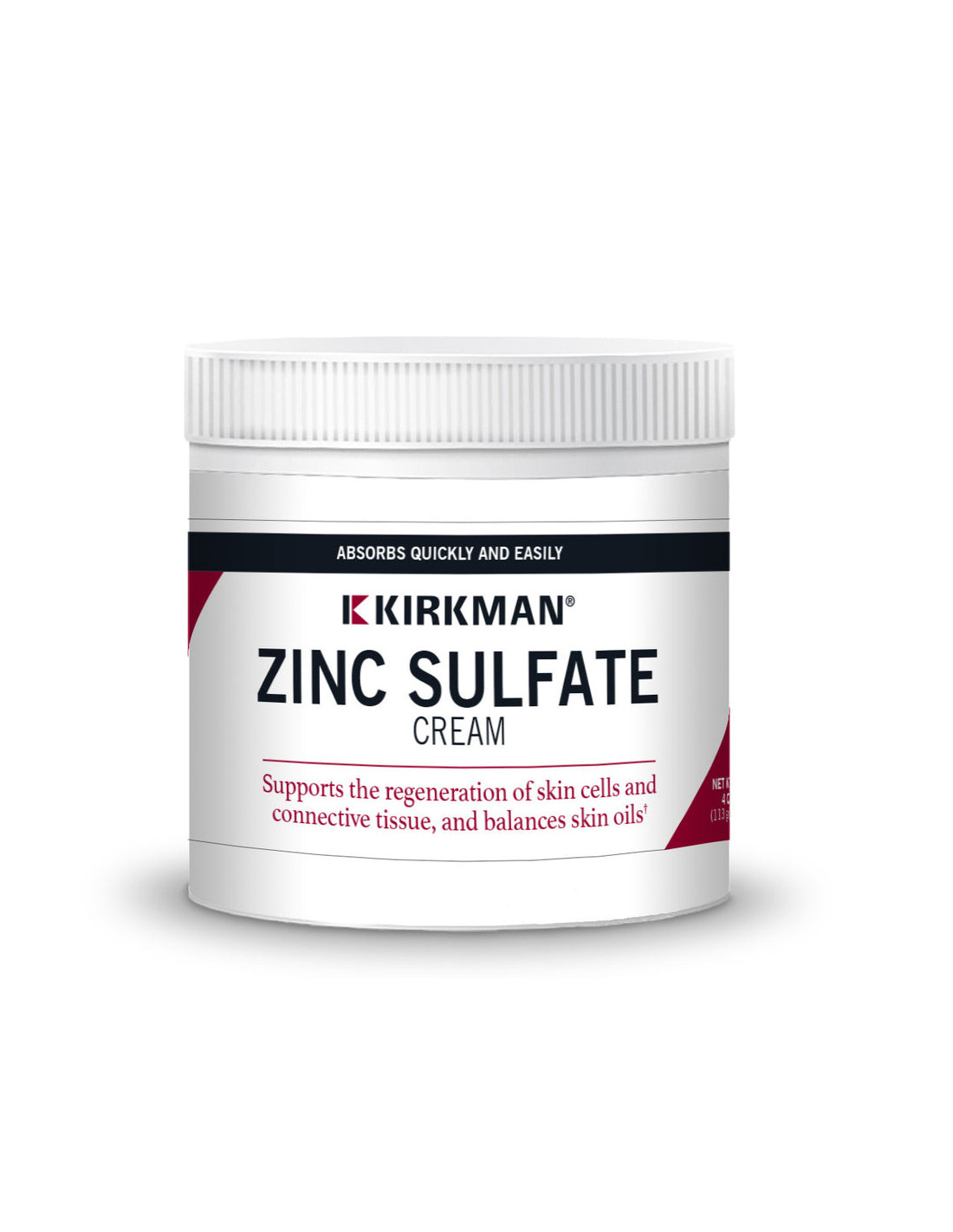A Kirkman® cink-szulfát krém egy kozmetikai helyi kezelés – nem étrend-kiegészítő. Cink-szulfátot tartalmaz, amely bőrtámogató enzimjeiről ismert. Az állításokat az EFSA vagy az FDA nem értékelte.