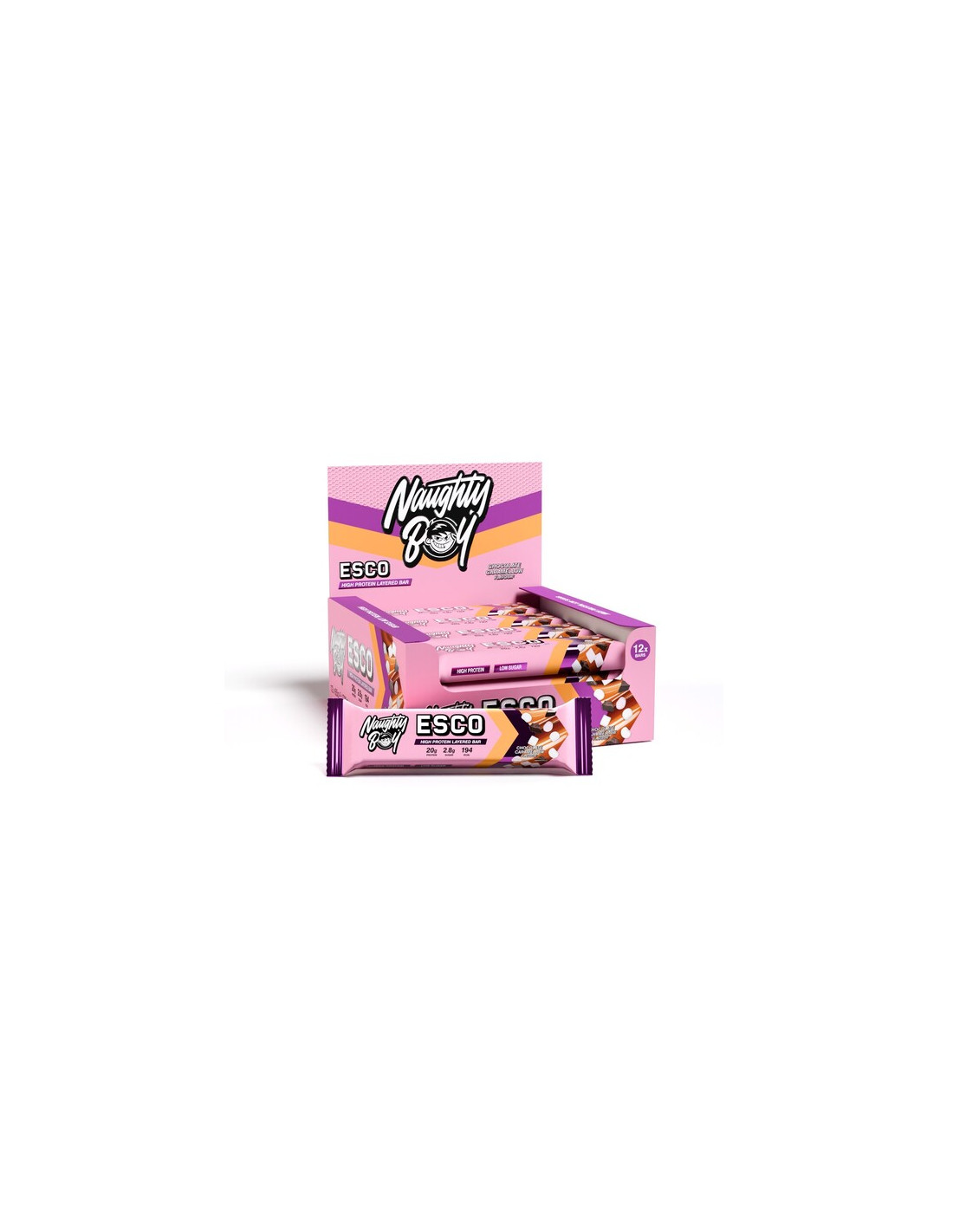 ESCO Protein Bar, Chocolate Caramellow - 12 x 65g | Naughty Boy