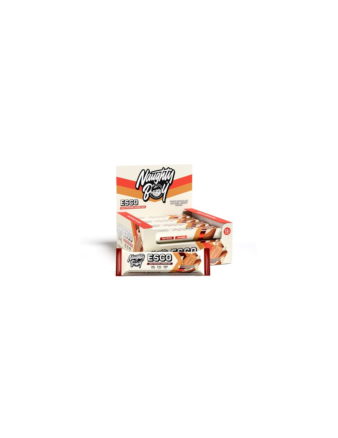 ESCO Protein Bar, White Chocolate Caramel Biscuit - 12 x 65g | Naughty Boy