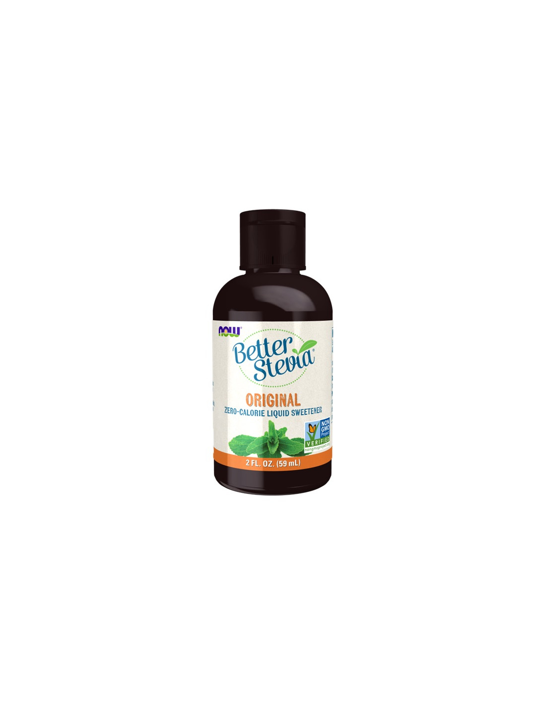 A NOW® BetterStevia® Liquid Original egy kalóriamentes, asztali édesítőszer, amely tanúsított bio stevia levélkivonatból készül. Kényelmes folyékony formában, bio nádalkohollal a stabilitás érdekében, növényi alapú cukoralternatívaként lett kifejlesztve italokban és ételekben.
