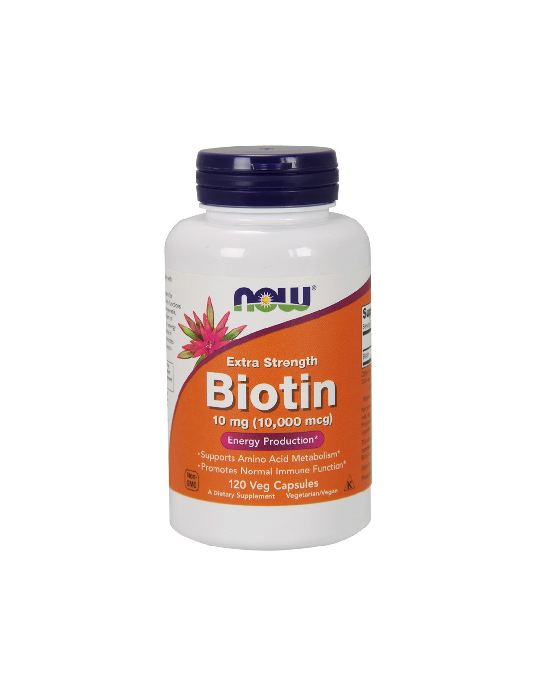 A NOW® Biotin 10 mg (10 000 mcg) Extra Erős Zöldséges Kapszulák nagy hatékonyságú biotin adagot tartalmaznak vegetáriánus kapszulában. A biotin hozzájárul a normál energiatermelő anyagcseréhez, a normál makrotápanyag-anyagcseréhez, valamint a haj, a bőr és a nyálkahártyák normál állapotának fenntartásához (EFSA által engedélyezett egészségügyi állítások ID 2807, 2808, 2809). GMP üzemben készült és mentes a gyakori allergénektől.