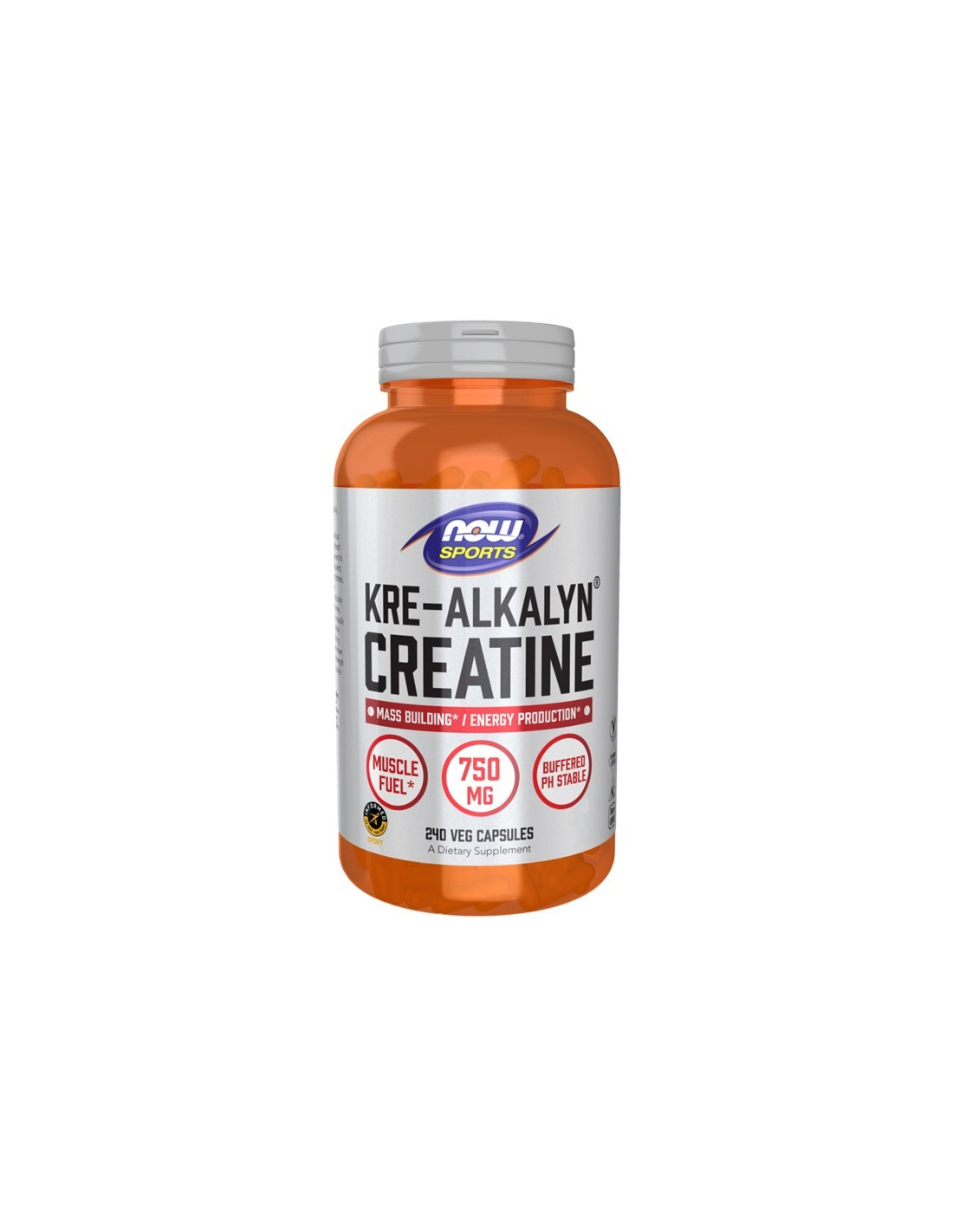 A NOW® Kre-Alkalyn® kreatin zöldségkapszulák 2 kapszulás adagonként 1500 mg pufferolt kreatin-monohidrátot tartalmaznak. Ez a vegetáriánusbarát formula mentes a gluténtől, tejtermékektől, szójától és más gyakori allergénektől. Az Egyesült Államokban, GMP üzemben gyártva, globálisan beszerzett összetevőkből.