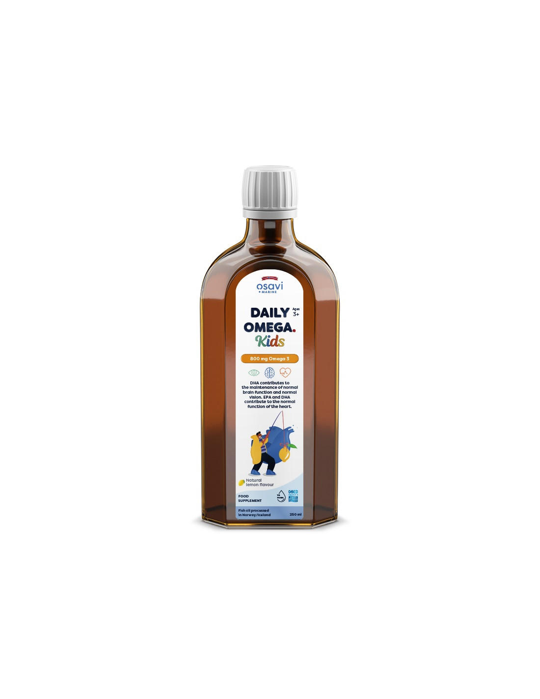 Kiváló minőségű halolaj-kiegészítő gyermekek számára, amely biztonságos és koncentrált omega-3 zsírsavforrást (EPA és DHA) biztosít kellemes citromízzel. Minden 2,5 ml-es adag 800 mg összes omega-3-at tartalmaz, beleértve 350 mg EPA-t és 300 mg DHA-t. A hivatalos Osavi termékcímke alapján ellenőrizve.