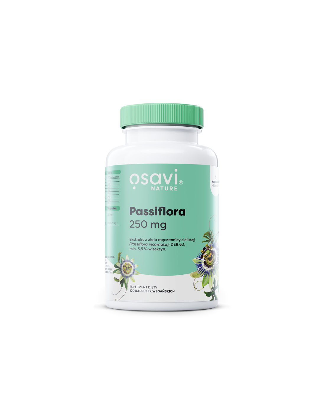 Standardizált golgotavirág ( Passiflora incarnata ) gyógynövénykivonatot tartalmazó vegán kapszulák. Minden kapszula 250 mg kivonatot (DER 6:1) tartalmaz, amelyet 1500 mg gyógynövényből nyernek ki, és legalább 3,5% vitexin (8,75 mg) tartalomra standardizáltak. Az összetétel és a felhasználás a hivatalos Osavi címkén ellenőrizve.
