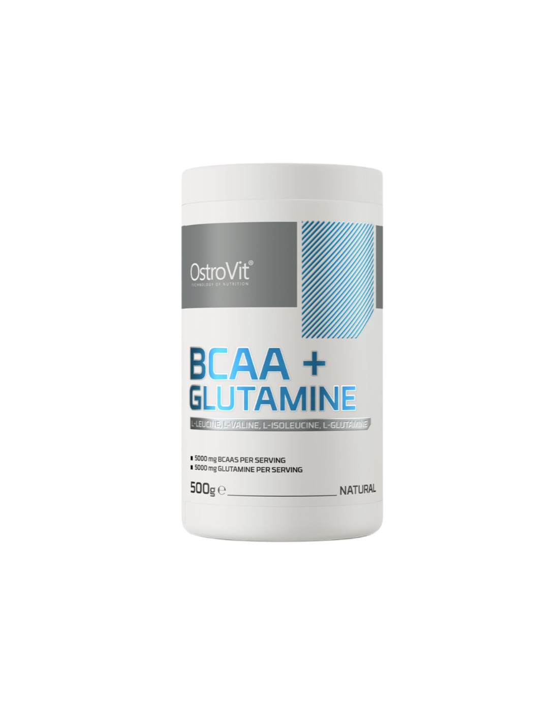 Az OstroVit BCAA + Glutamin egy por állagú étrend-kiegészítő, amely L-glutamint és elágazó láncú aminosavakat (L-leucin, L-izoleucin, L-valin) tartalmaz. A termék ízesítetlen formában kapható, és könnyen keverhető folyadékokkal a napi étrend-kiegészítés részeként.