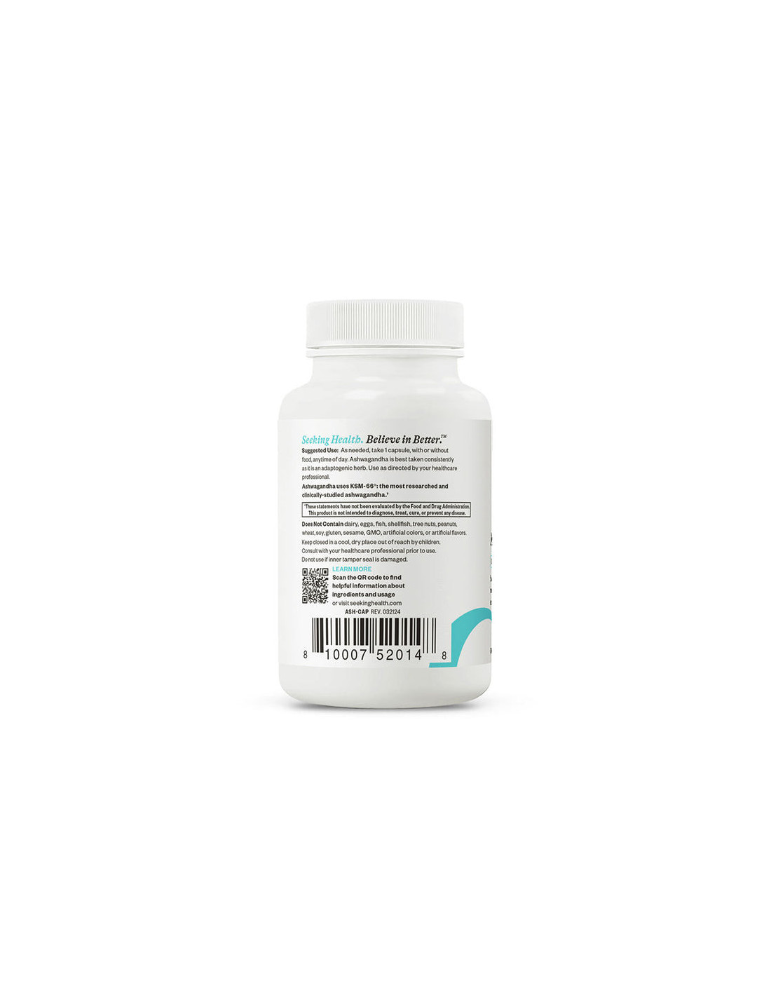 Ashwagandha kivonat 467 mg | A Seeking Health 467 mg KSM-66® ashwagandha gyökérkivonatot tartalmaz vegetáriánus kapszulánként. 5% vitanolid-tartalomra standardizált, ez a kiváló minőségű, kizárólag gyökérből származó kivonat a tisztaság és az állag jegyében készült, szintetikus adalékanyagok és allergének nélkül.