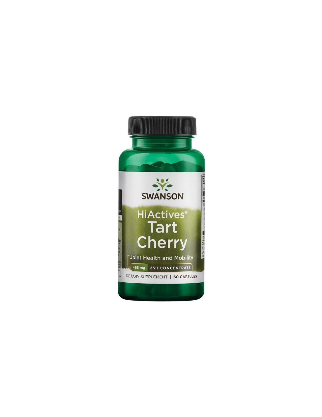 A Swanson Superior Herbs HiActives® Tart Cherry egy VitaCherry® HiActives® meggyporral készült étrend-kiegészítő. Az összetevő koncentrált cseresznyeforrásból származik, és a természetesen előforduló növényi vegyületekre szabványosították. Minden kapszula meghatározott mennyiségű meggyport tartalmaz, amely alkalmas a változatos és kiegyensúlyozott étrendbe való beillesztésre.