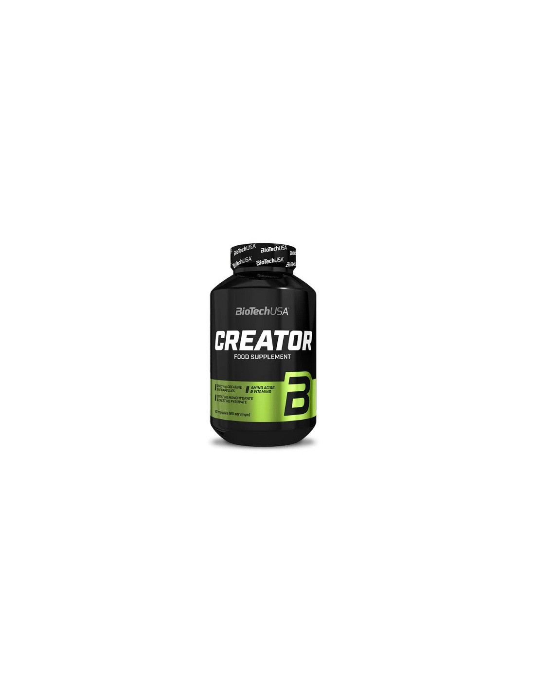 BioTechUSA Creator combina diverse forme di creatina con aminoacidi selezionati e vitamine essenziali in formato capsula, offrendo una composizione semplice per un uso quotidiano flessibile.