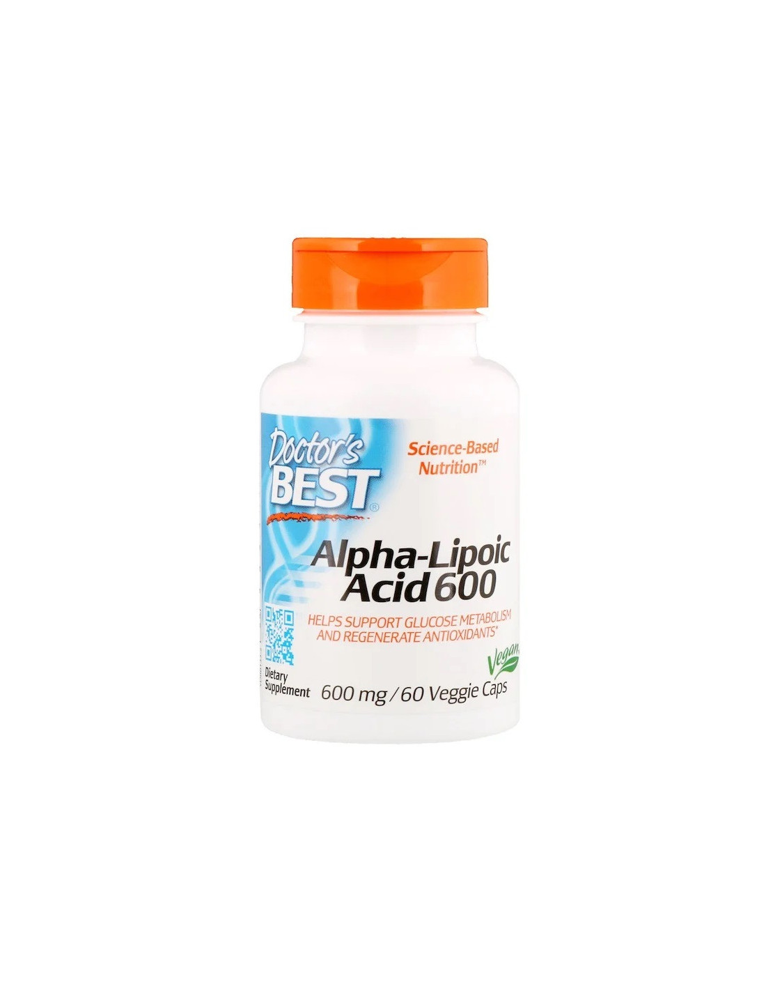 Doctor's Best Alpha-Lipoic Acid fornisce 600 mg di acido alfa-lipoico per capsula. Incapsulato in capsule vegetali, privo di additivi comuni.