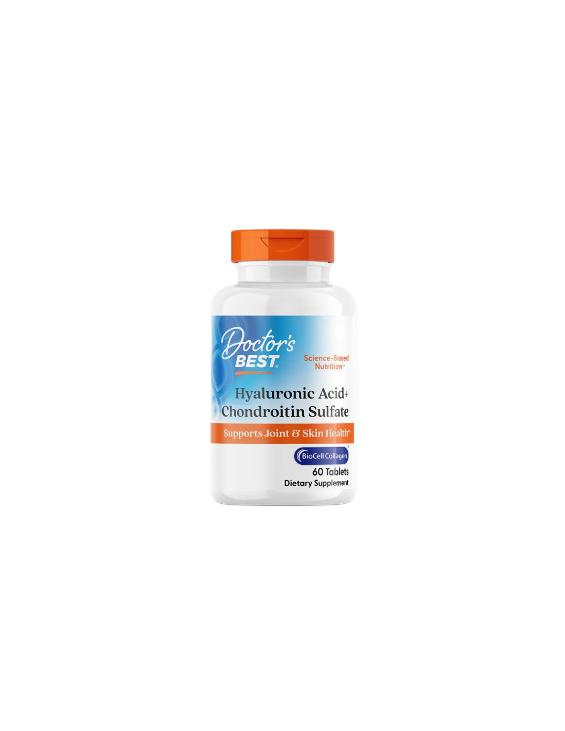 Doctor's Best Hyaluronic Acid + Chondroitin Sulfate combina BioCell Collagen® con collagene idrolizzato di tipo II, condroitin solfato e acido ialuronico. Ogni compressa fornisce 1000 mg di complesso BioCell Collagen® derivato dalla cartilagine sternale di pollo.