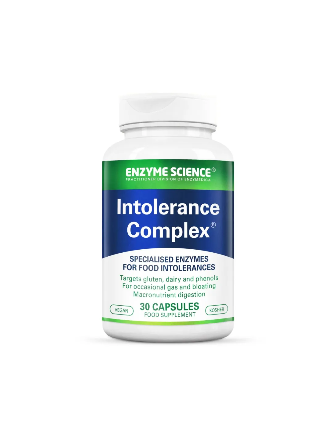 Intolerance Complex® Comprehensive Digestive Enzyme Formula – 30/90 capsule vegetariane contiene una miscela ad alta potenza di enzimi proteolitici, digestivi di carboidrati e grassi, tra cui DPP-IV per favorire la scomposizione del glutine e della caseina, e una miscela ATPro™ (CoQ10, ATP, fitasi, citrato di magnesio) per supportare la digestione generale.*