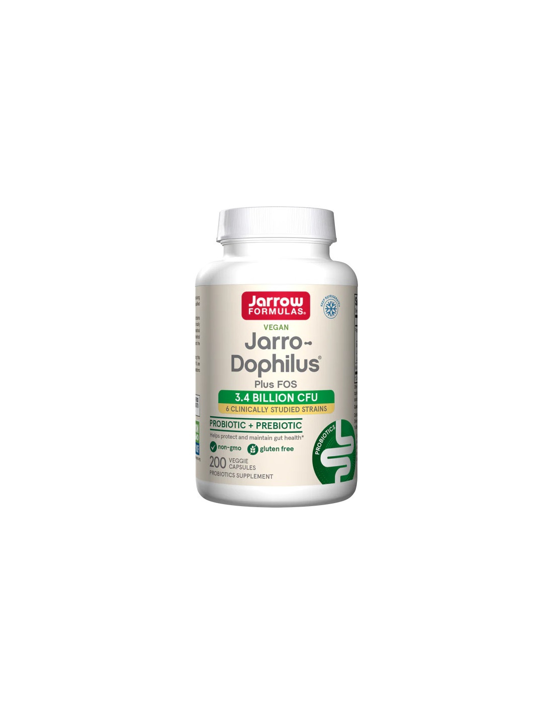 Jarrow Formulas® Jarro-Dophilus® + FOS è un integratore sinbiotico che combina sei ceppi probiotici clinicamente studiati con inulina-fruttooligosaccaridi (FOS) per supportare un microbioma intestinale sano e la funzione immunitaria.