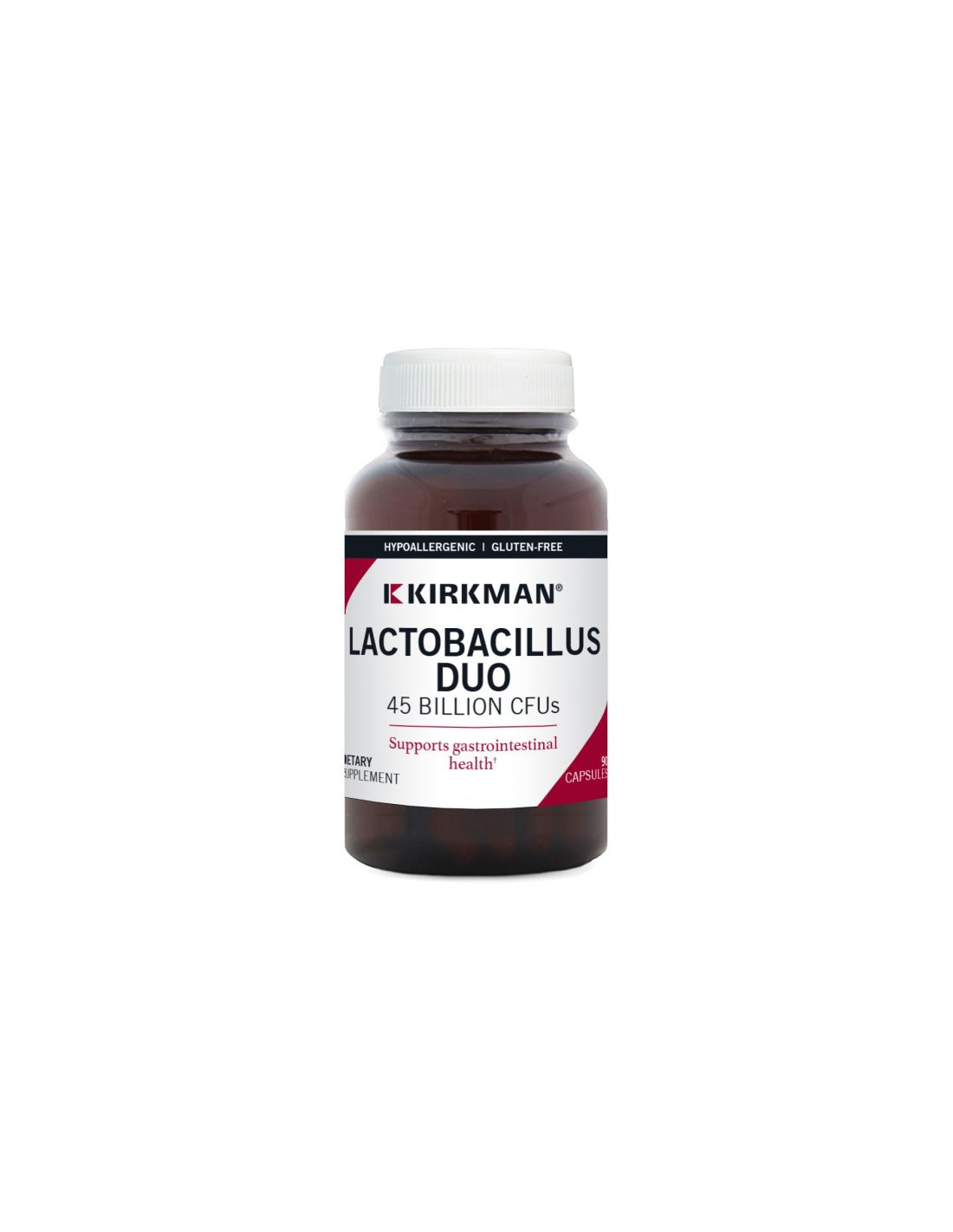 Kirkman® Lactobacillus Duo™ – Ipoallergenico è un integratore probiotico ad alta potenza, privo di inulina, sviluppato per supportare la salute digestiva e immunitaria. Ogni capsula contiene 45 miliardi di UFC da due ceppi di Lactobacillus, L. rhamnosus e L. plantarum, noti per la loro resistenza agli acidi e alla bile e per la loro comprovata esperienza nella ricerca clinica. Ideale per chi cerca una formula probiotica semplice e ipoallergenica.