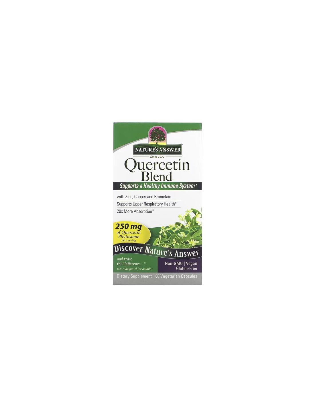 Questo integratore alimentare fornisce una miscela di quercetina fitosoma, bromelina, zinco e rame in capsule di origine vegetale. Nature's Answer offre una formulazione semplice, adatta all'uso quotidiano.