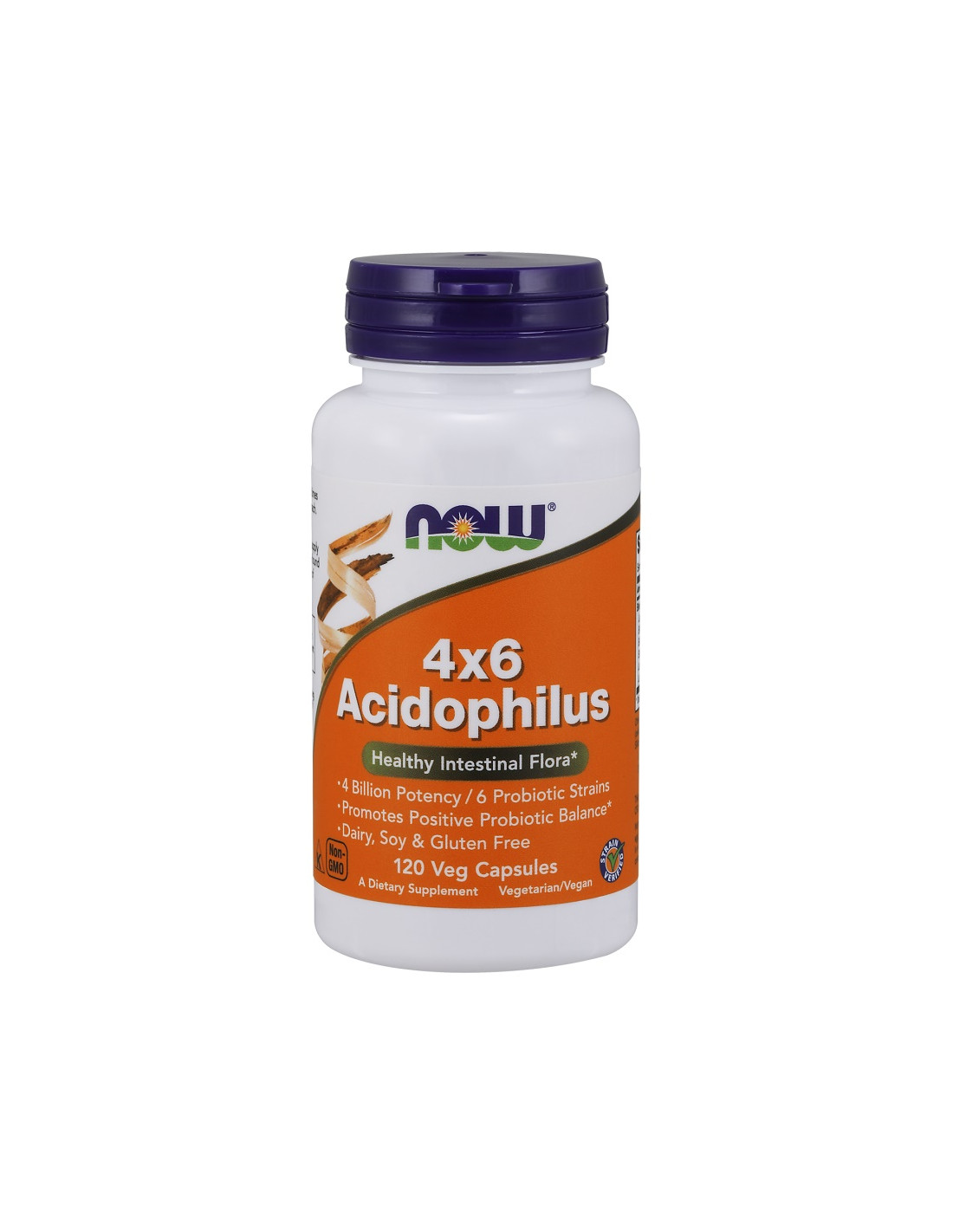 Le capsule vegetali NOW® Acidophilus 4x6 contengono una miscela bilanciata di 6 ceppi probiotici, garantendo un'efficacia garantita di 4 miliardi di UFC per porzione fino alla data di scadenza. Ogni capsula è verificata tramite la tecnologia di DNA fingerprinting e prodotta in uno stabilimento certificato GMP.