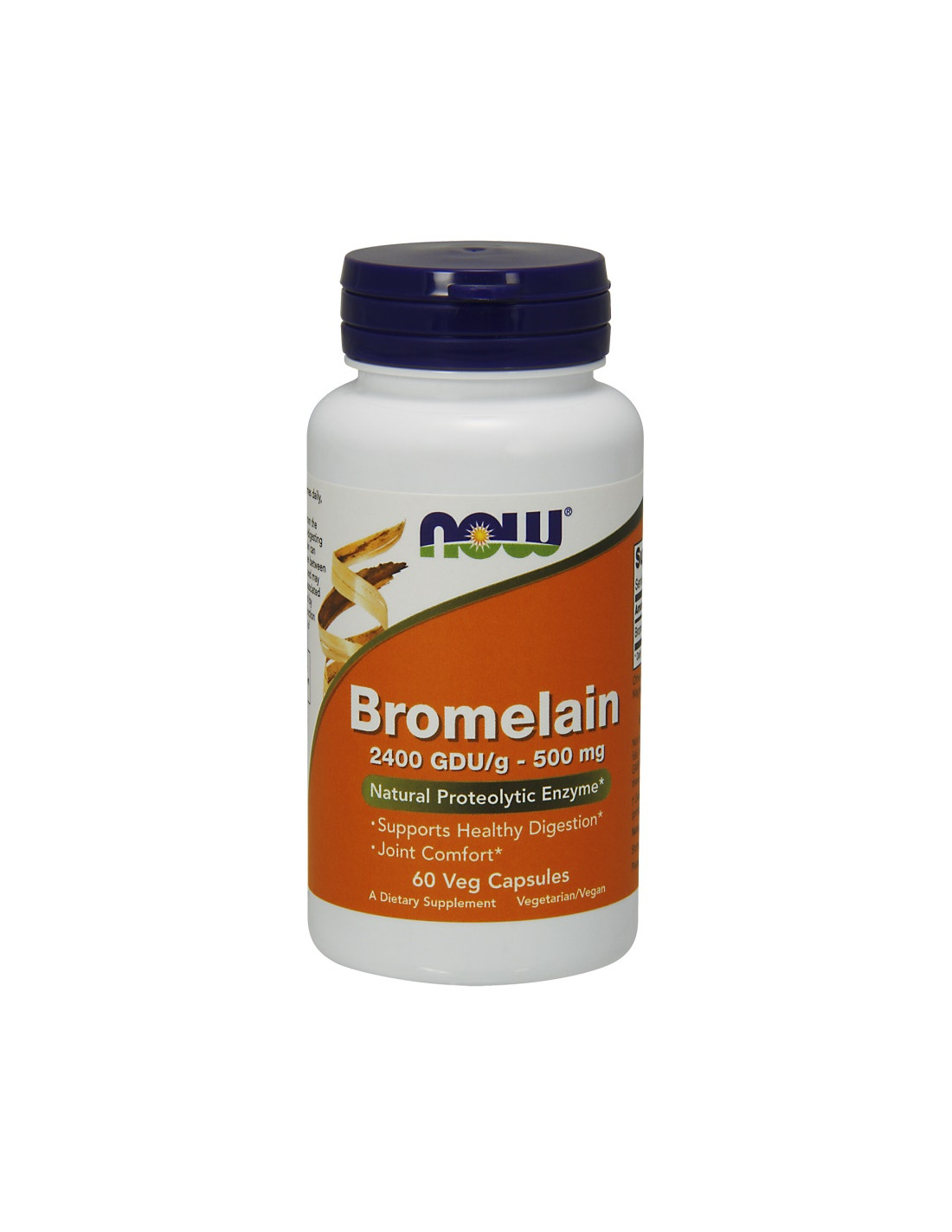 Le capsule vegetali NOW® Bromelain 500 mg forniscono 500 mg di bromelina (2400 GDU/g) per capsula, ricavata dal gambo dell'ananas. Incapsulato in una capsula di cellulosa vegana, questo prodotto è fabbricato secondo rigorosi standard GMP e sottoposto a test di qualità negli Stati Uniti con ingredienti di provenienza globale.