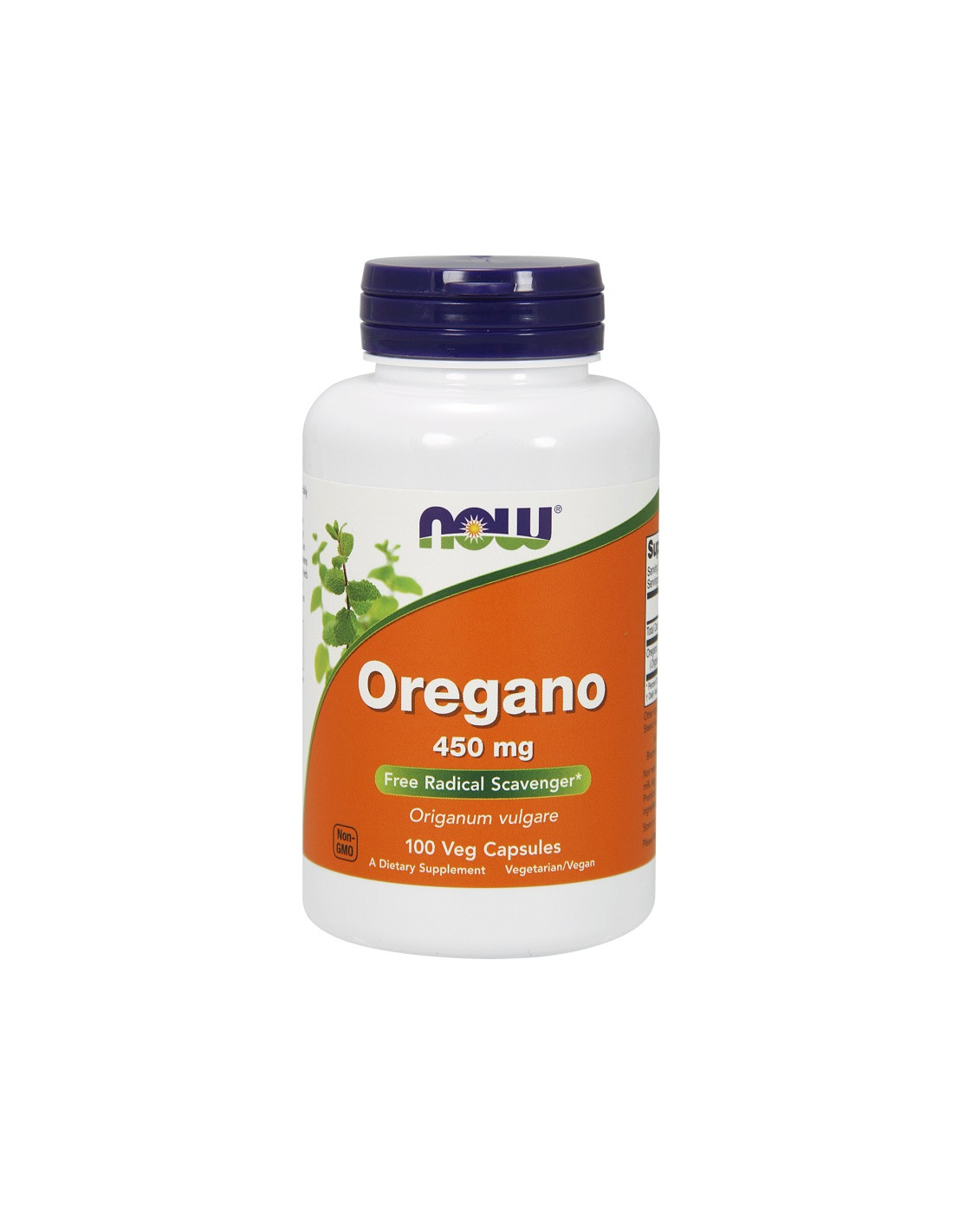 Le capsule vegetali NOW® Oregano forniscono polvere di foglie di origano in capsule vegetali. Ogni porzione da due capsule fornisce 900 mg di foglie di origano (Origanum vulgare).