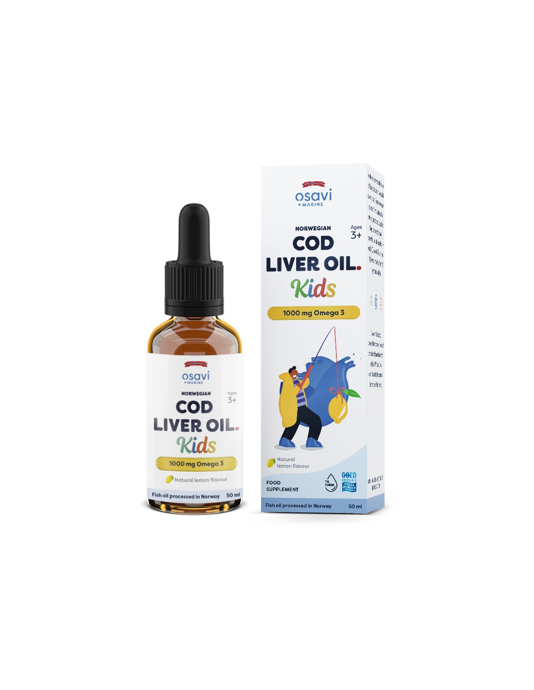 Olio di fegato di merluzzo norvegese per bambini 1000 mg Omega-3 gusto limone – Osavi