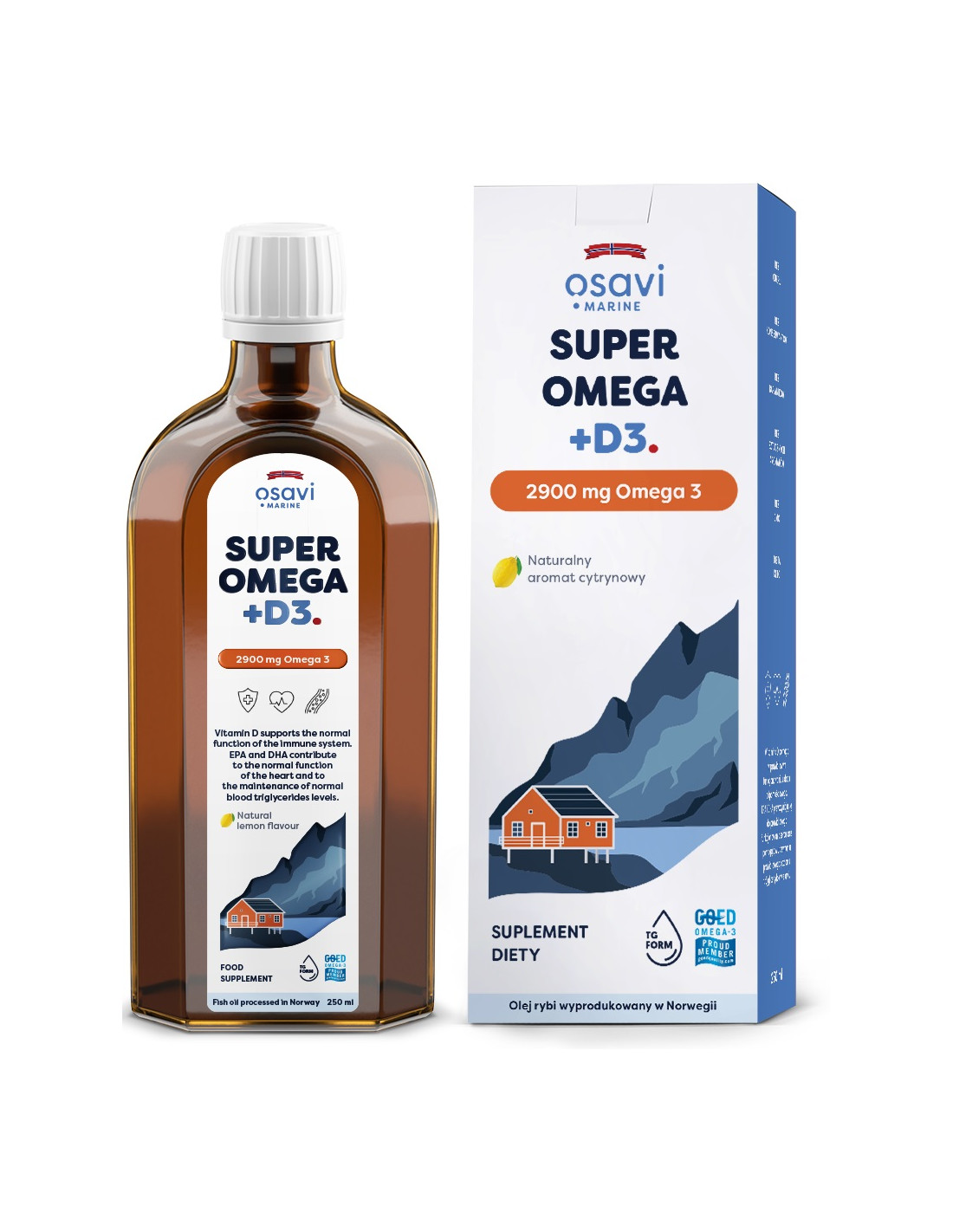 Super Omega + D3 (Marine), 2900mg Omega 3 (Cytryna) - 250 ml. | Osavi