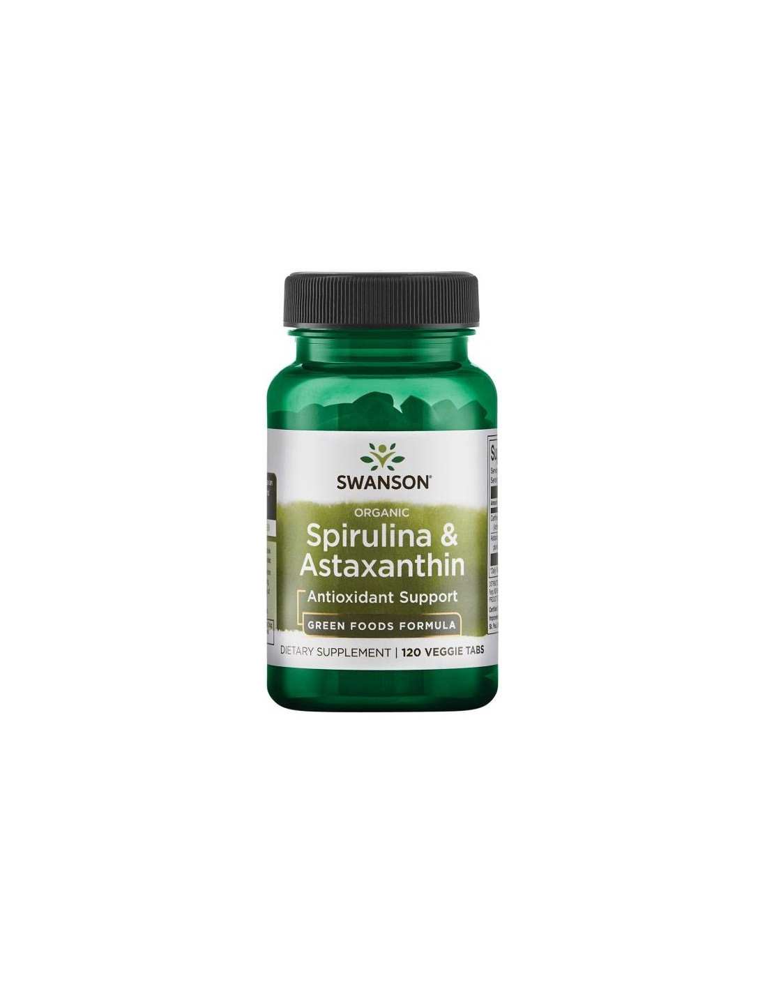 Swanson GreenFoods Formulas Organic Spirulina & Astaxanthin contiene spirulina biologica certificata combinata con astaxantina di origine naturale ricavata da microalghe. Questo prodotto è presentato in compresse vegetariane ed è adatto per un'integrazione regolare.