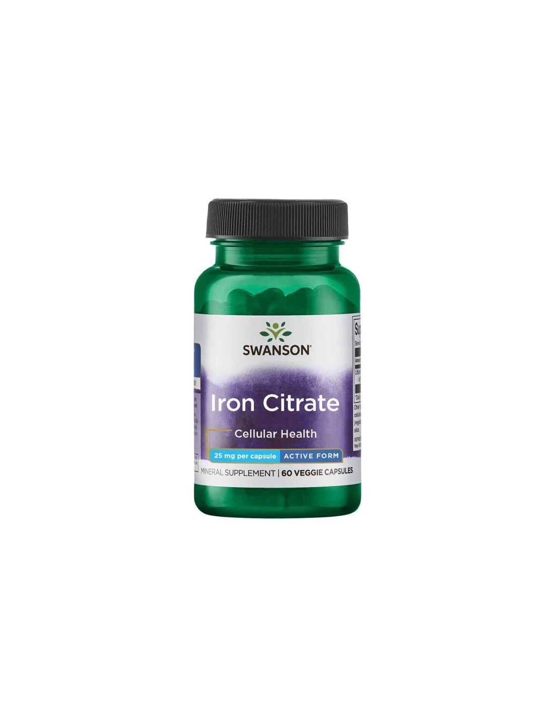 Swanson Premium Iron Citrate è un integratore alimentare formulato con ferro sotto forma di citrato di ferro. Ogni capsula vegetale fornisce una quantità definita di ferro, adatta all'integrazione di una dieta varia ed equilibrata.