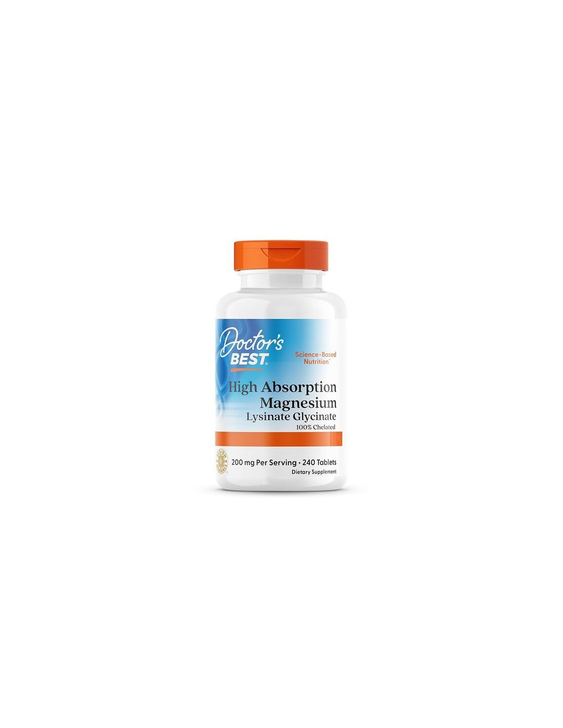 Doctor's Best High Absorption Magnesium bevat Albion® TRAACS® magnesiumlysinaatglycinaatchelaat, een goed opneembare en milde vorm van magnesium. Elke portie van 2 tabletten bevat 200 mg magnesium, wat een flexibele suppletie met vegetarische tabletten ondersteunt.