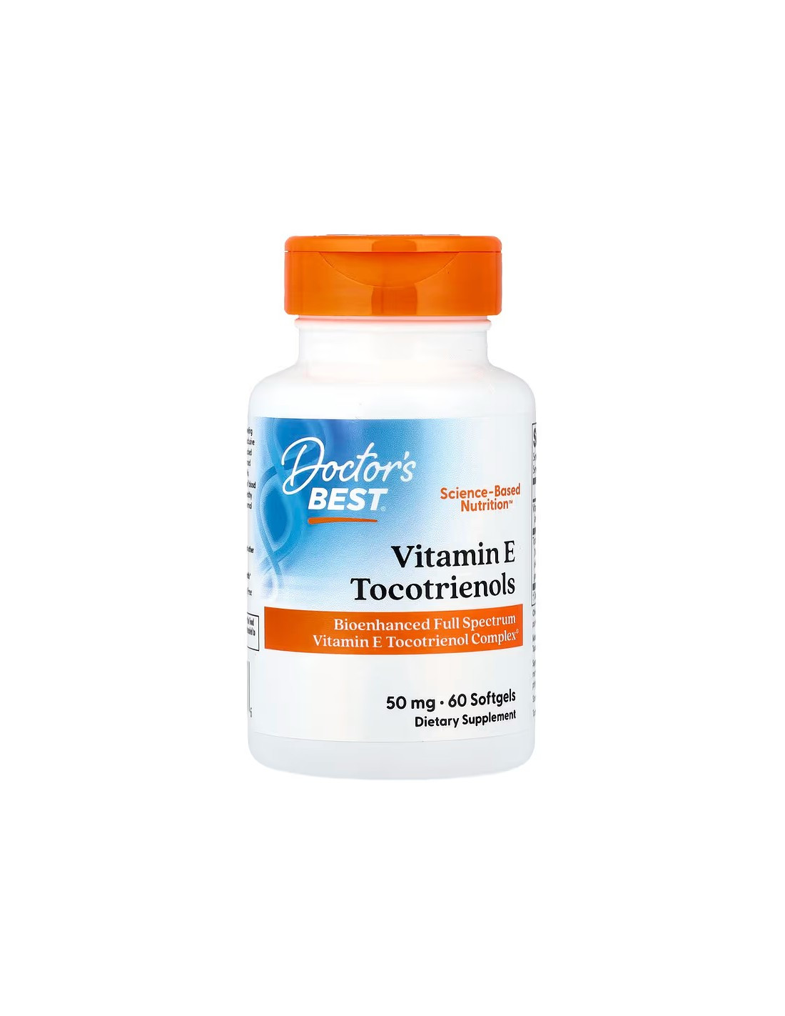 Doctor's Best Vitamine E Tocotrienolen bevat vitamine E als natuurlijke d-alfa-tocoferol, samen met gemengde tocotrienolen uit rode palmolie. Elke portie bevat 13,4 mg vitamine E en 50 mg tocotrienolen in softgelvorm.