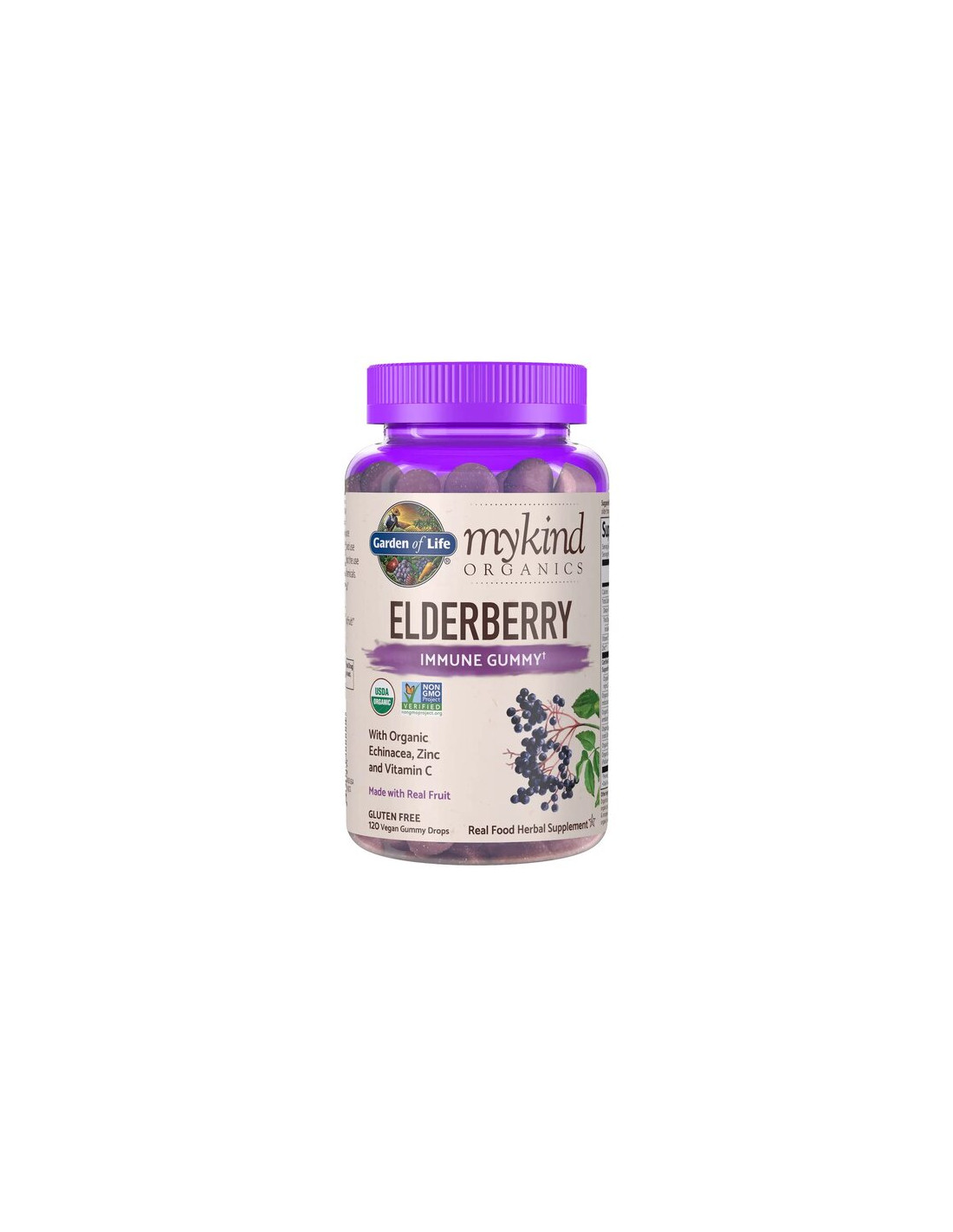 Garden of Life Organics Elderberry Gummy is een voedingssupplement met vitamine C, zink en een gecertificeerde biologische mix ter ondersteuning van het immuunsysteem, afkomstig van fruit en botanische extracten. Het product is verkrijgbaar in de vorm van kauwbare gummies en is geschikt voor volwassenen en kinderen onder toezicht.