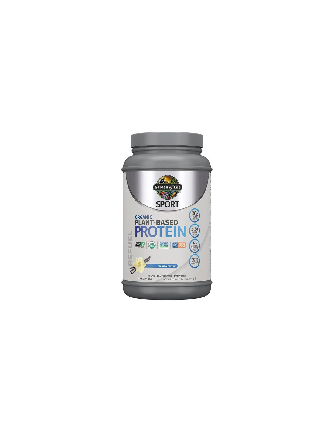 Garden of Life Sport Organic Plant-Based Protein – Vanilla is een voedingssupplement samengesteld met biologische plantaardige eiwitbronnen, natuurlijke vanillesmaak en fruitextracten, gecombineerd met een probiotische stam. De poedervorm maakt dagelijks gebruik gemakkelijk door het te mengen met water of andere plantaardige dranken.