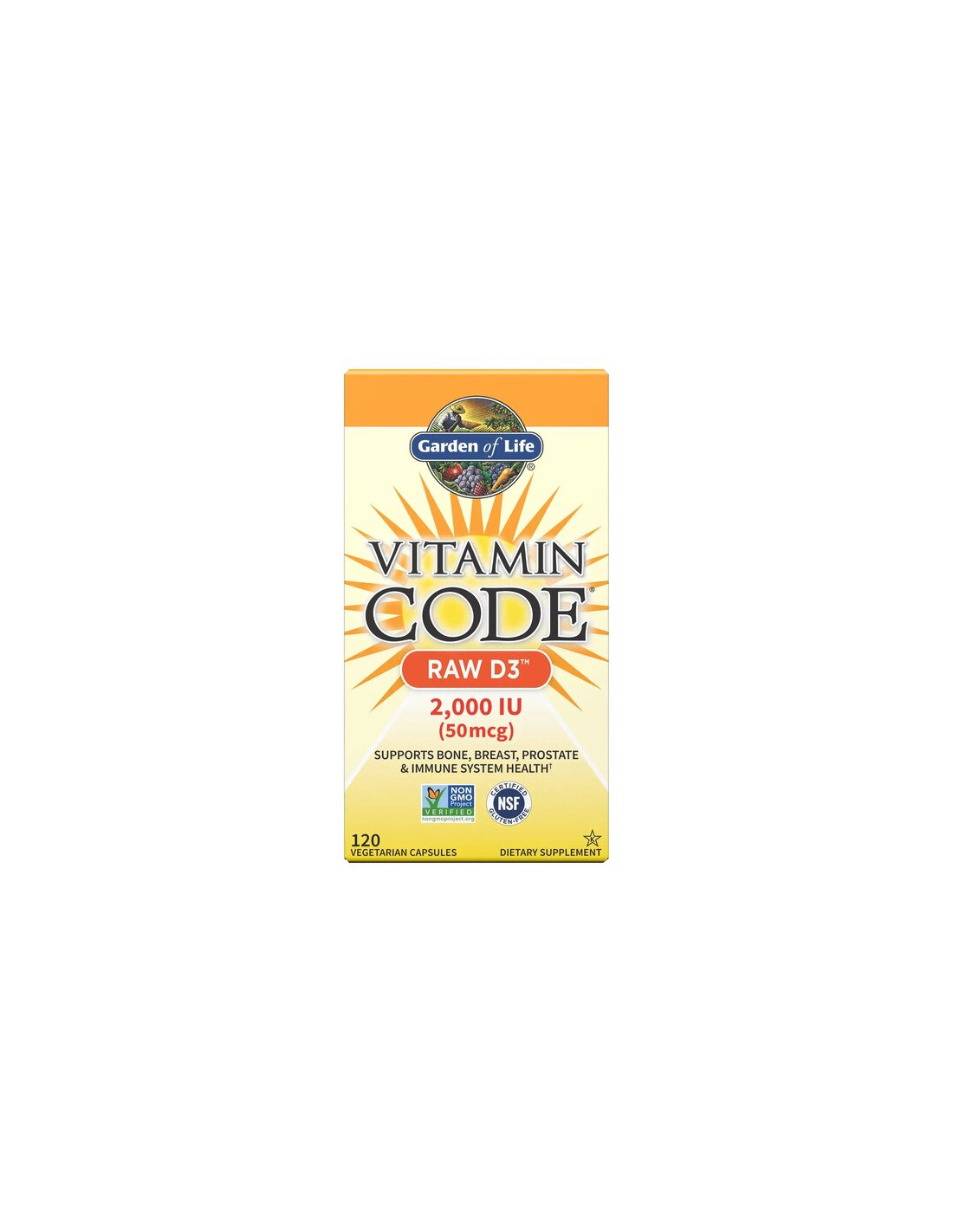 Garden of Life Vitamin Code RAW D3 is een voedingssupplement samengesteld met vitamine D3 afkomstig uit gekweekte voedingsbodems. De formule wordt aangevuld met chlorella met gebroken celwanden, een rauwe biologische mix van fruit en groenten, en een rauwe mix van probiotica en enzymen. De vegetarische capsules zijn ontworpen voor gemakkelijke dagelijkse inname.